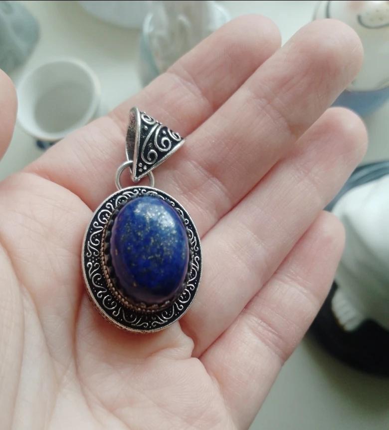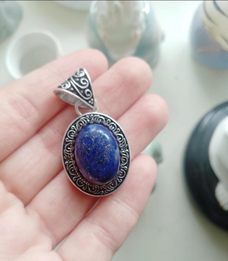 Wonderful Vintage Lapis Lazuli Gemstone Handmade 925 Sterling Silver Jewelry Pendant