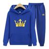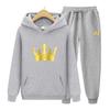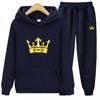 Men Tracksuits Set Spring Autumn Crown Print Sweatshirt Long Sleeve Hooded Pullover Sweatshirt Top Jacket Coat