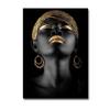 Modern Home Black Skin Woman Golden Makeup Modeling Canvas Painting Wall Art Poster Prints Bedroom Living Room Decoration Murals