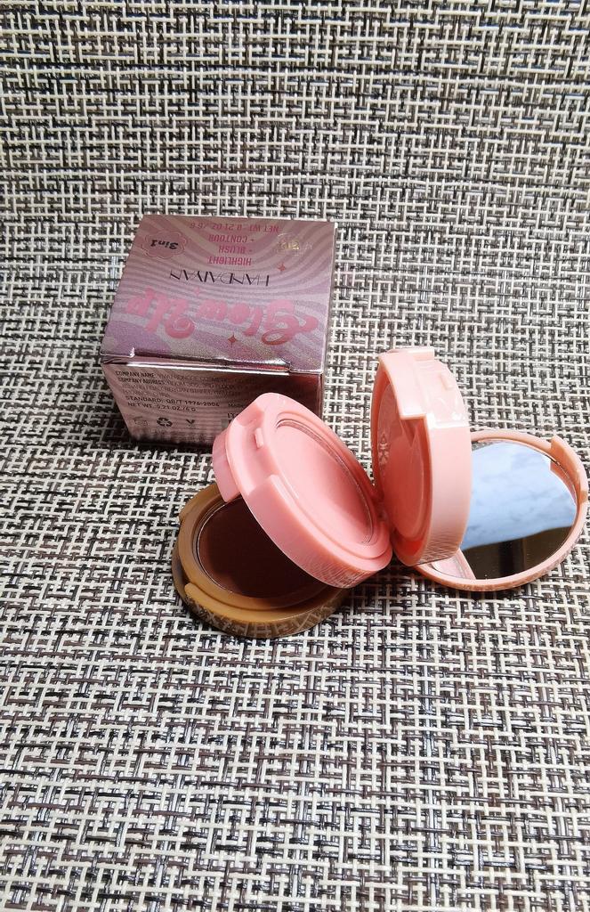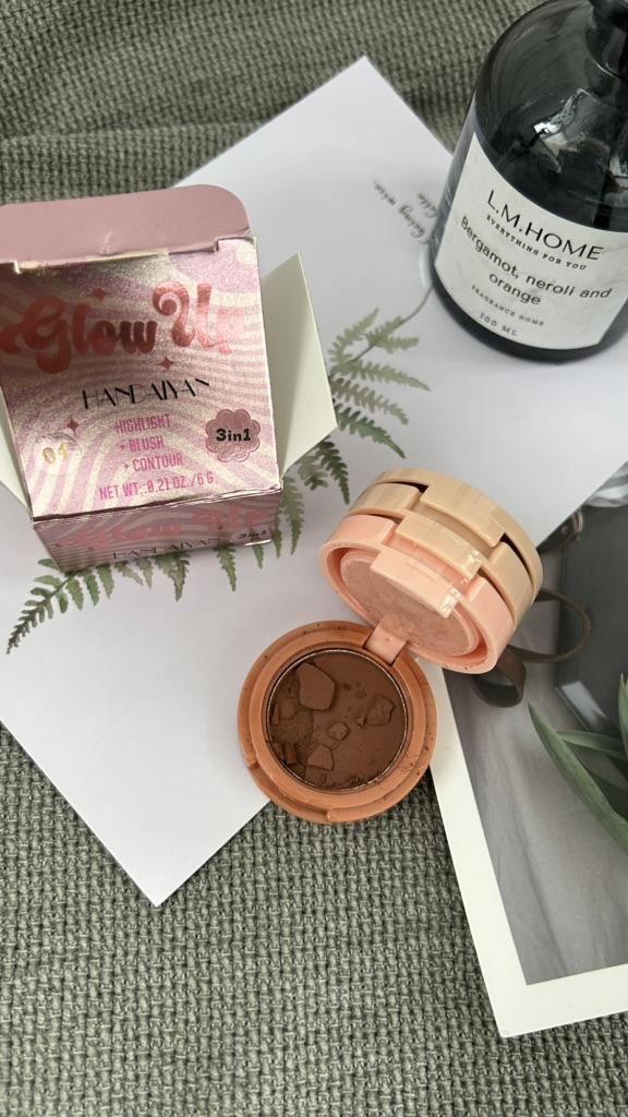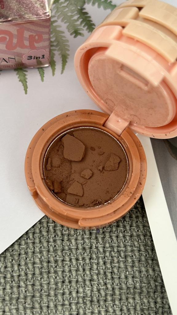 * rouge-highlighter-contourer * ๐ฅ๐๐ถ๐ฒ๐ณ๐ฒ๐ฟ๐๐ฒ๐ถ๐ Almost 4 weeks ๐ฅ๐๐ถ๐ฒ๐ณ๐ฒ๐ฟ๐๐บ๐ณ๐ฎ๐ป๐ด The delivery includes 1 3 in 1 highlighter/rush contourer in the corresponding color and size. The dress is available in 2 different designs in one size (6g). I ordered number 2. Unfortunately, the cosmetic item arrived damaged: Both the bronzer and the highlighter were crumbled. So it seems there was a mistake in the packaging. ๐ฅ๐ค๐๐ฎ๐น๐ถ๐รค๐ The rouge, highlighter and bronzer are available 3 in 1 in a 6 gram jar. I find this super practical, especially when travelling, as you don't have to lug around so many heavy cosmetic items. I find the colors (especially the blush) very beautiful. Very nice subtle pink. The highlighter skilfully sets beautiful accents in the nose, cheekbones and eyelid area. The bronze powder is very intense, so you have to be careful depending on your skin type. I have more of a blonde or light skin type. I think you can really see a difference in the before and after picture.. ๐ฅ๐๐ฎ๐๐ถ๐ Practical 3 in 1 cosmetic jar, consisting of blusher, highlighter and bronze powder for contouring. โ Unfortunately, the jar didn't arrive completely intact (the blusher was the only one that remained intact) but I was still able to use it. Hence one star deduction ๐