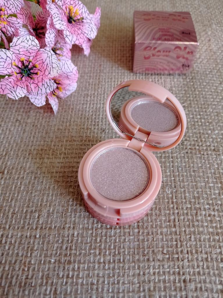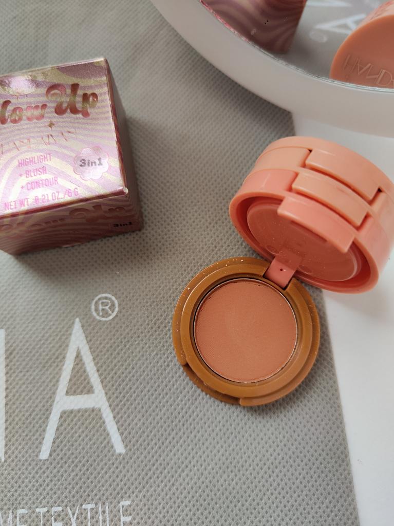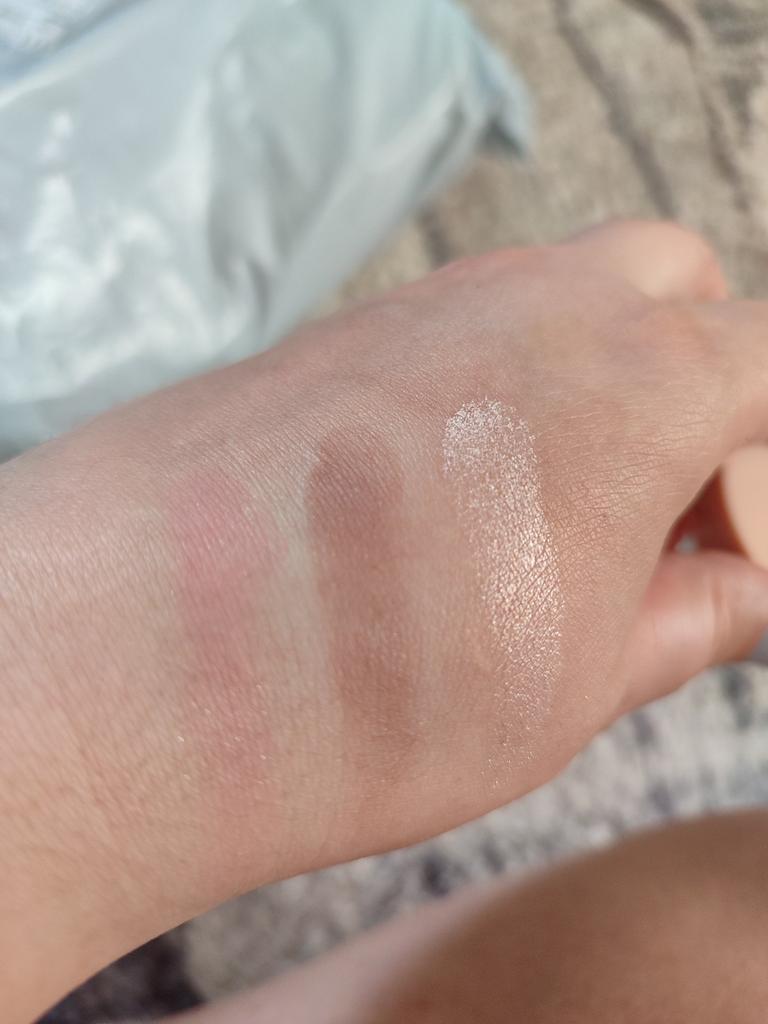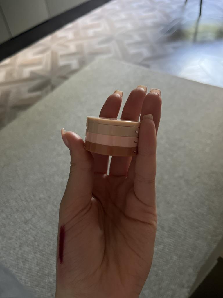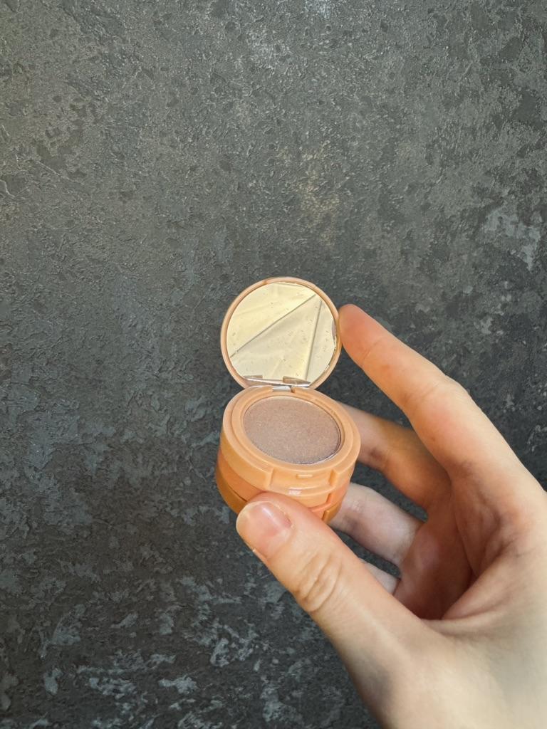 3๏ธโฃ to 1๏ธโฃ โ Highlighter โ Blush โ Bronzer A small round box containing 3 different tools. The box is plastic, miniature. Very convenient to carry in a clutch. There is a mirror. My box is number 1 and I really like the shades. The price is very nice, and the quality is top notch โฅ๏ธ