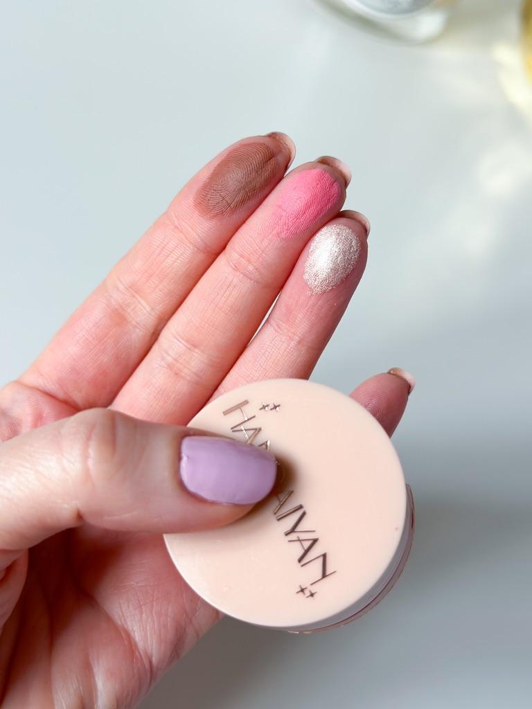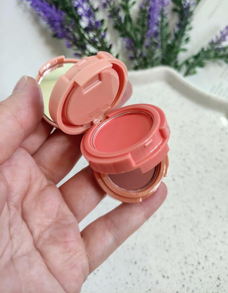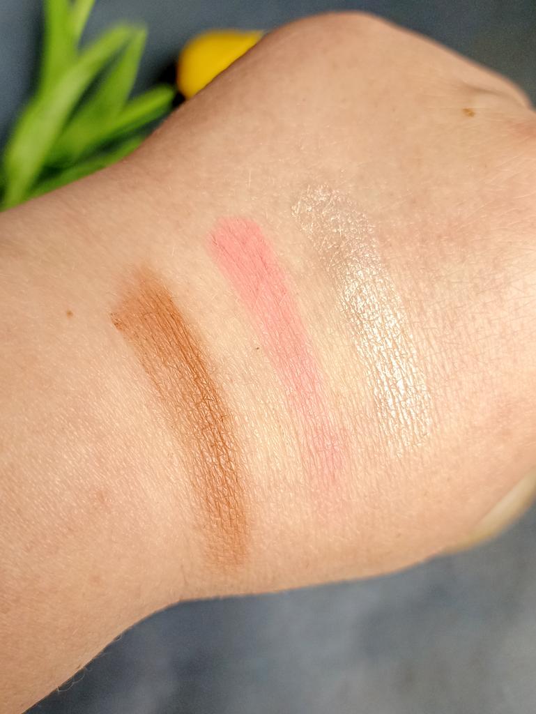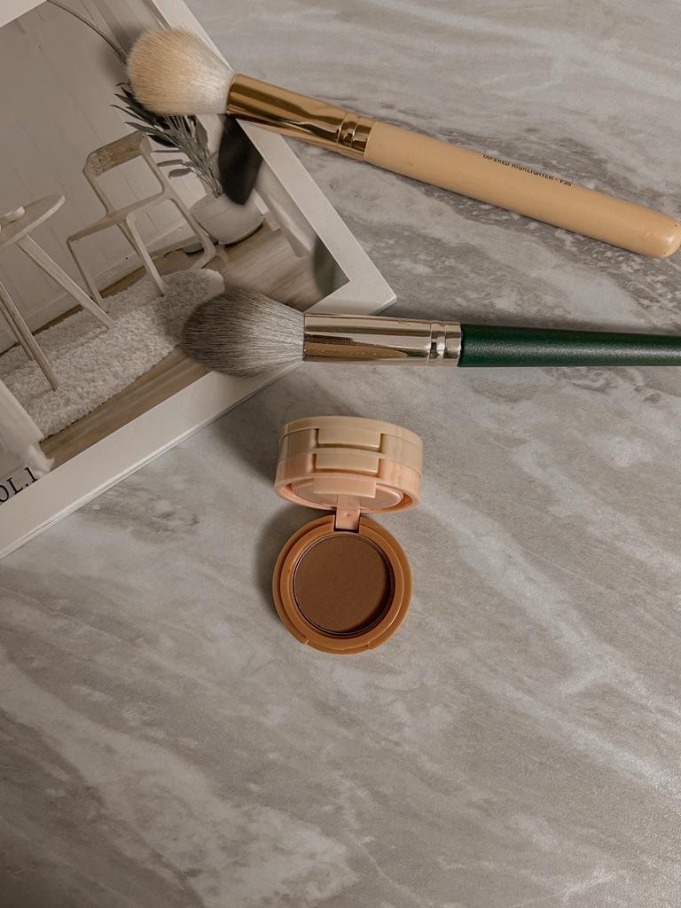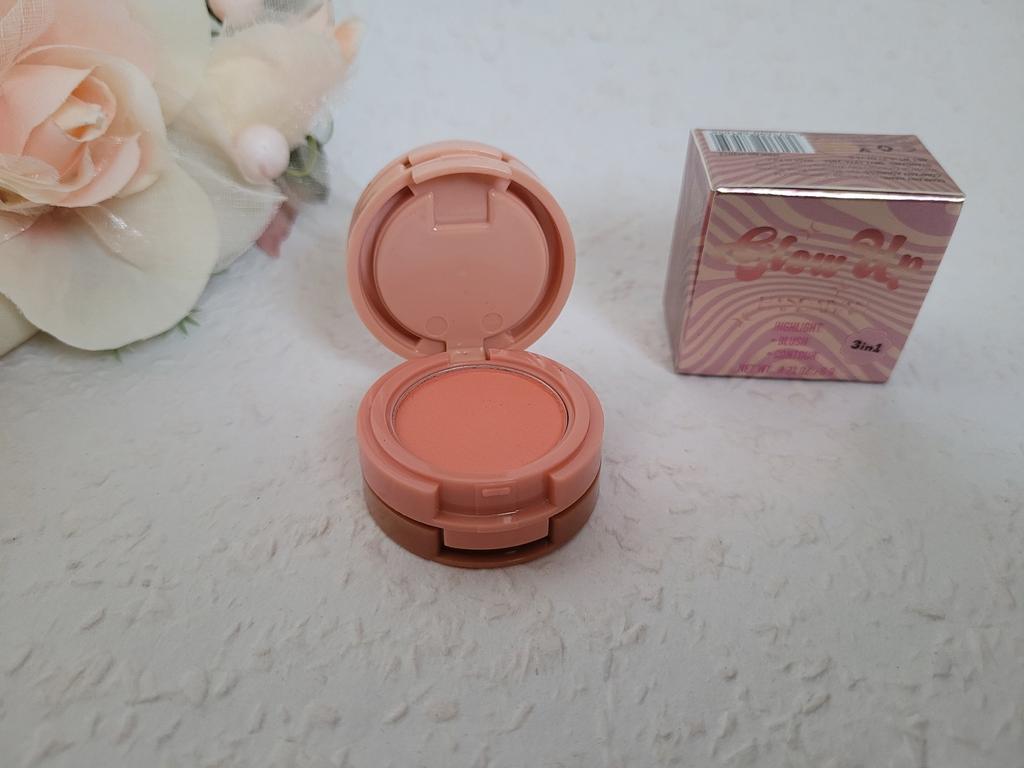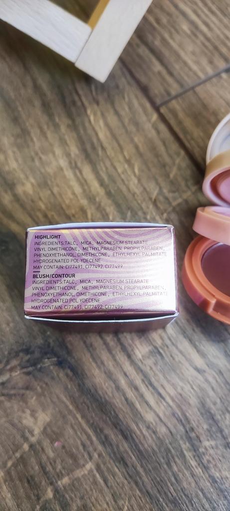 3๏ธโฃ to 1๏ธโฃ โ Highlighter โ Blush โ Bronzer A small round box containing 3 different tools. The box is plastic, miniature. Very convenient to carry in a clutch. There is a mirror. My box is number 1 and I really like the shades. The price is very nice, and the quality is top notch โฅ๏ธ
