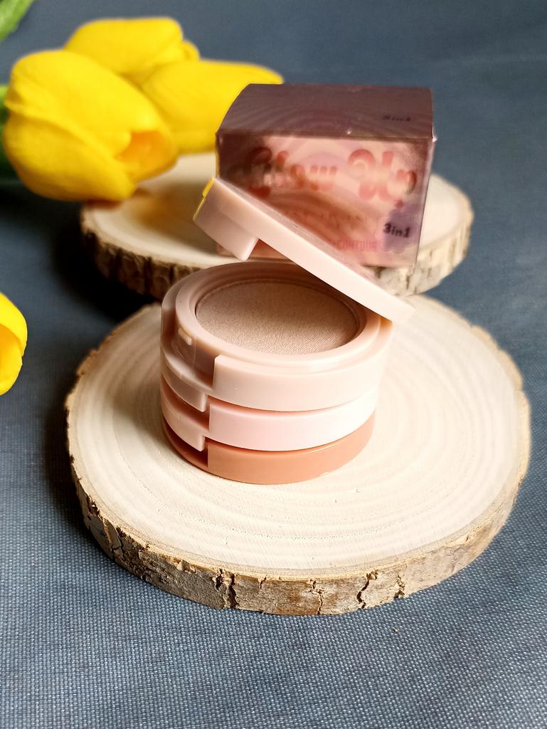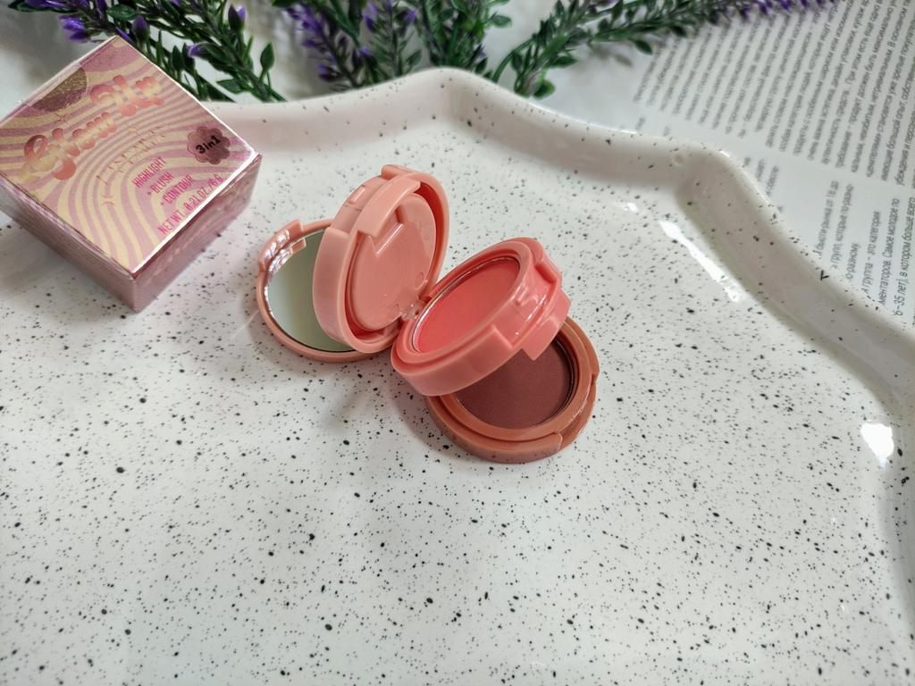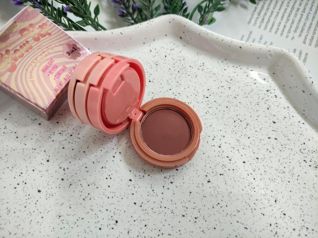 Contour mini paletteโจ The 3-in-1 palette combines blush, highlighter and bronzer. The colors complement each other harmoniously. The seller has two shades. Bronzer adds warmth and definition to your contours, creating a perfect shadow effect. Blush gives the face a fresh and healthy look. The main highlighter is skin glow. Apply above the cheekbone, under the eyebrows. I saved the most pleasant for the end, I was very pleasantly surprised by the pigmentation of the product This format is convenient to take with you in your cosmetic bag.