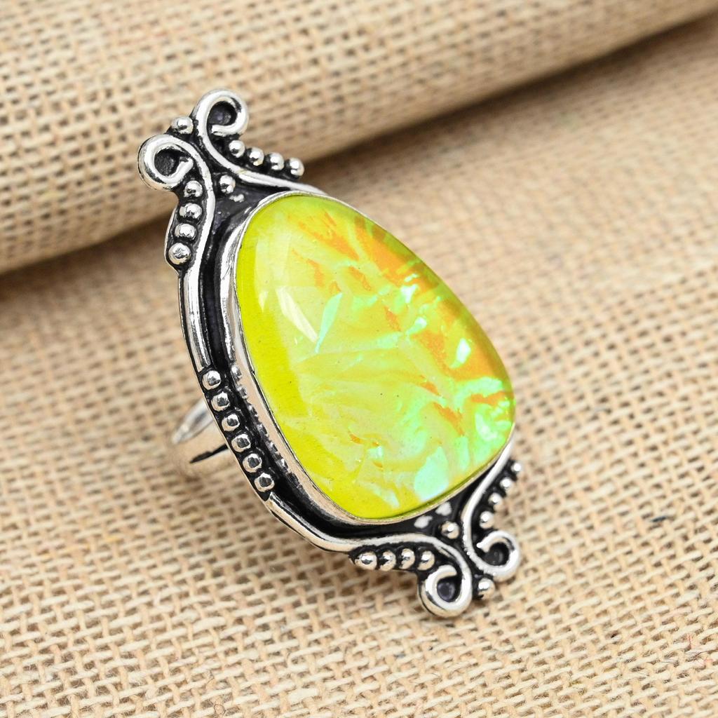 Yellow Triplet Opal Gemstone 925 Sterling Silver Handmade Ring Women Jewelry