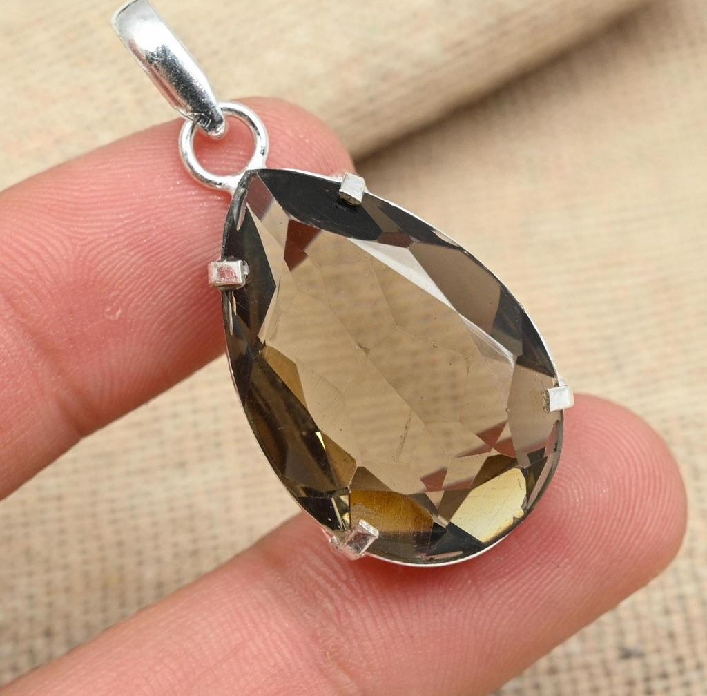 Faceted Smoky Topaz Gemstone 925 Sterling Silver Handmade Jewelry Fancy Pendant