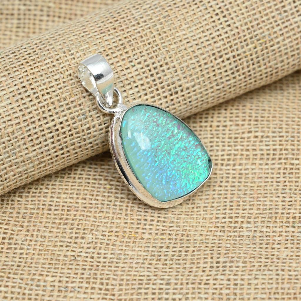 Blue Australian Triplet Opal Gemstone 925 Sterling Silver Handmade Jewelry Pendant For Her