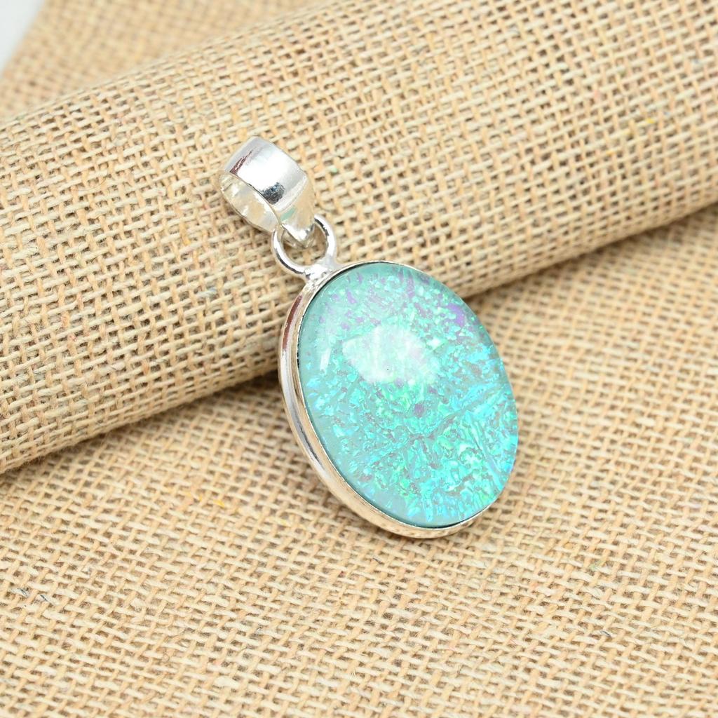 Solid 925 Sterling Silver Blue Australian Triplet Opal Gemstone Handmade Designer Pendant