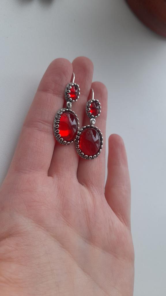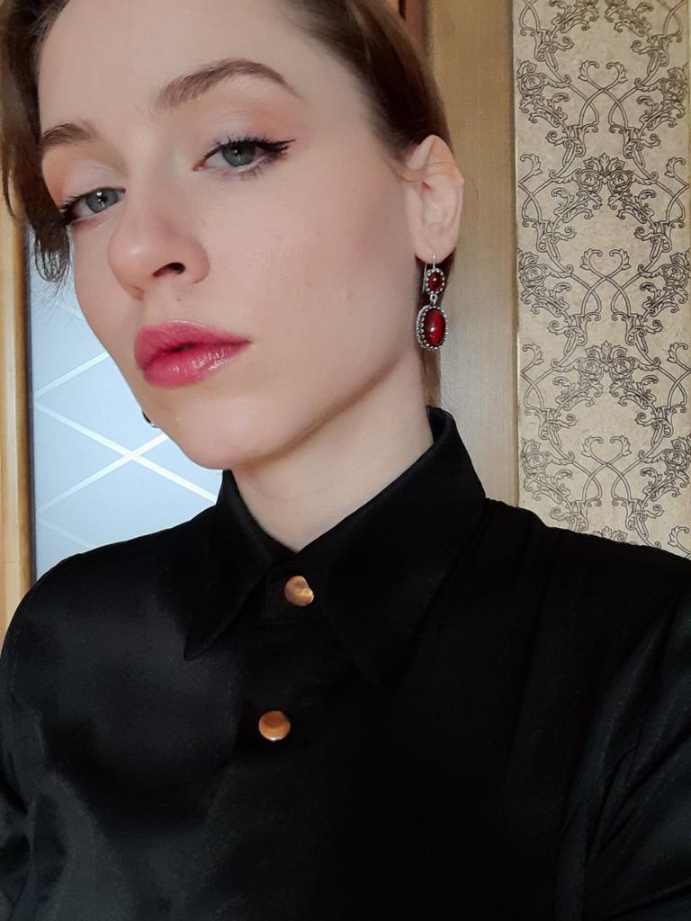 In real life they are literally blood red. My daughter immediately took them from me. A teenager who wears everything in a gothic style.