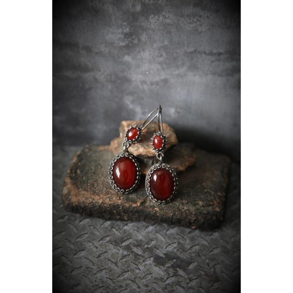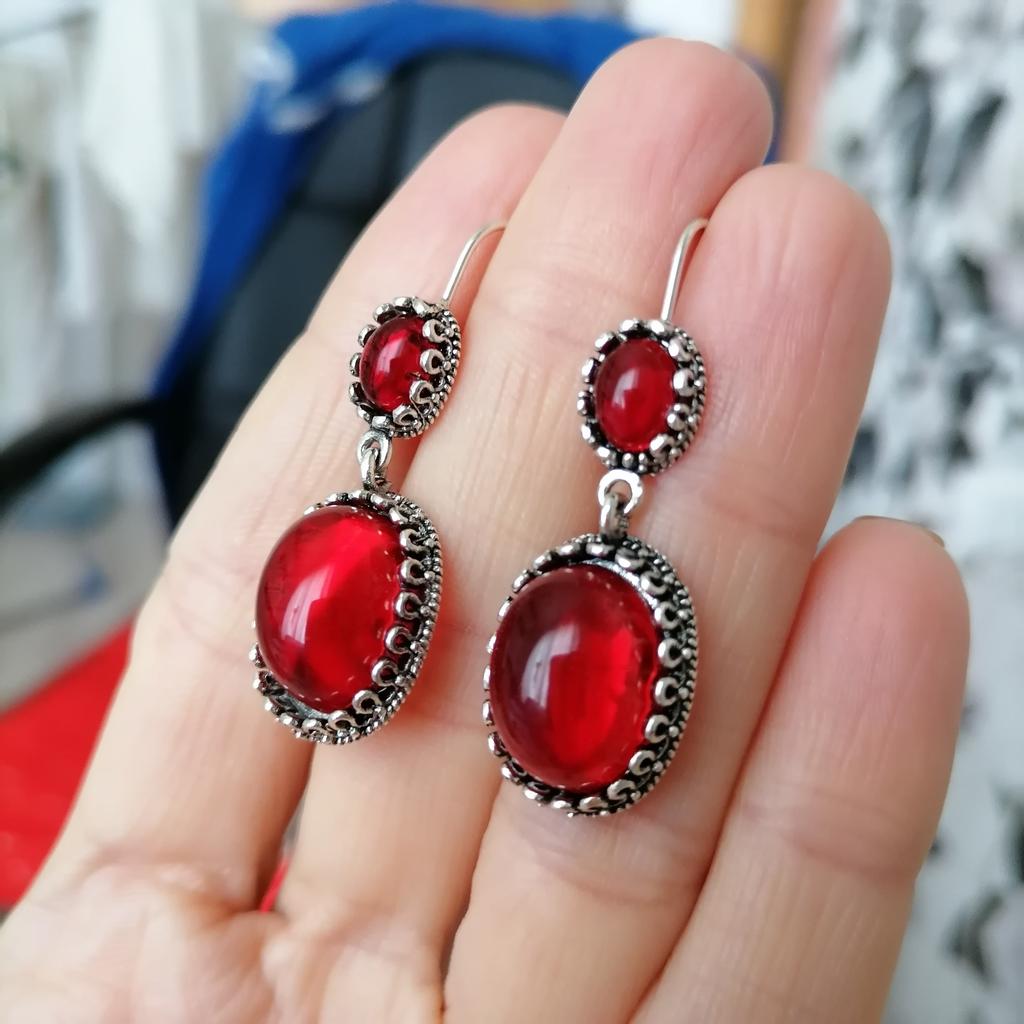 Vintage Punk Red Oval Baroque Earrings Alloy Hyperbole Butterfly Flower Dangle Earrings Hollow Heart Net Pendants Earrings Gifts