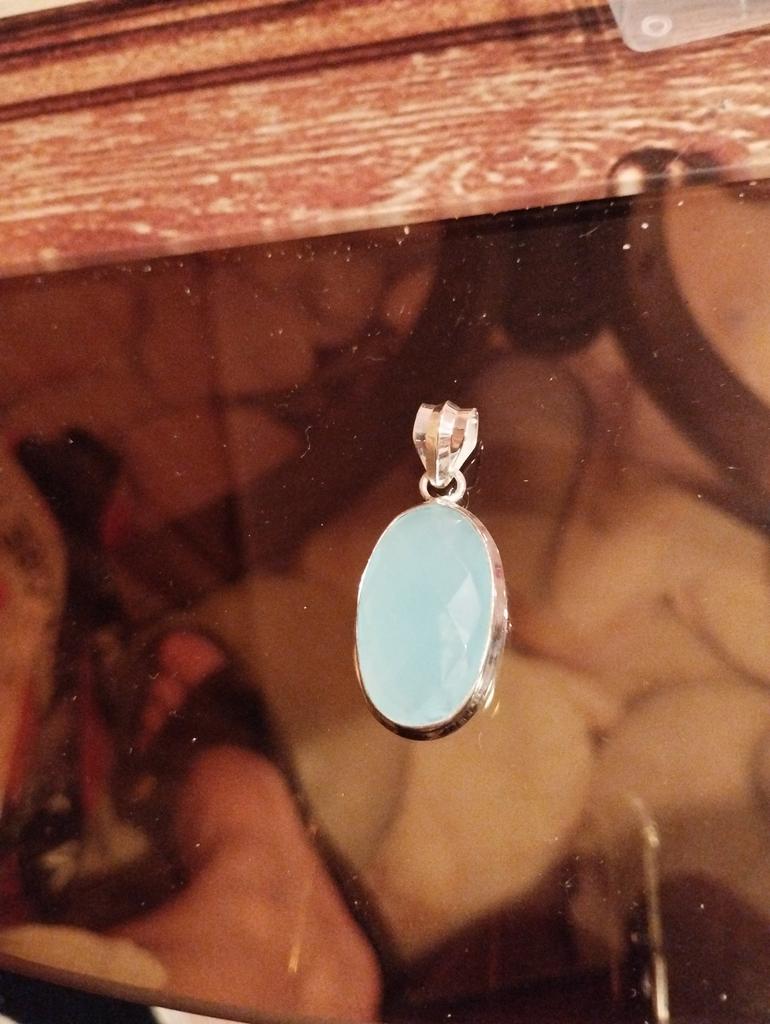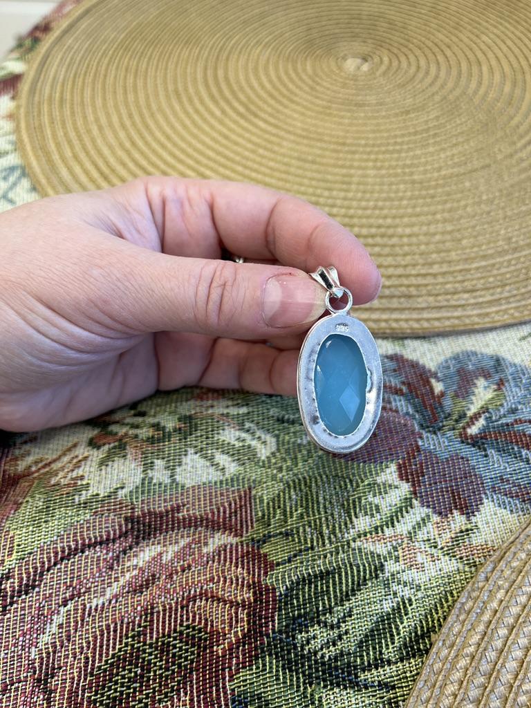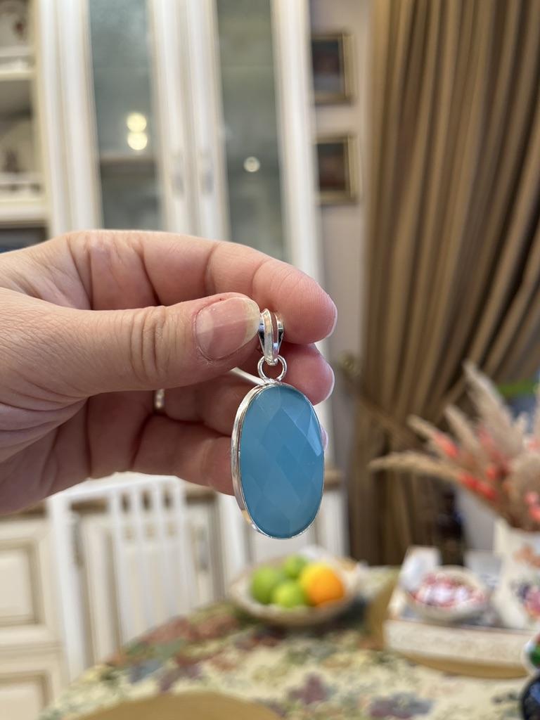 Unique Blue Chalcedony Gemstone Pendant 925 Sterling Silver Jewelry For Women