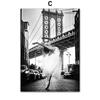 New York Bridge Feather Flower Fashion Girl Wall Art Canvas Painting Posters And Prints Black White Wall Pictures Living Room