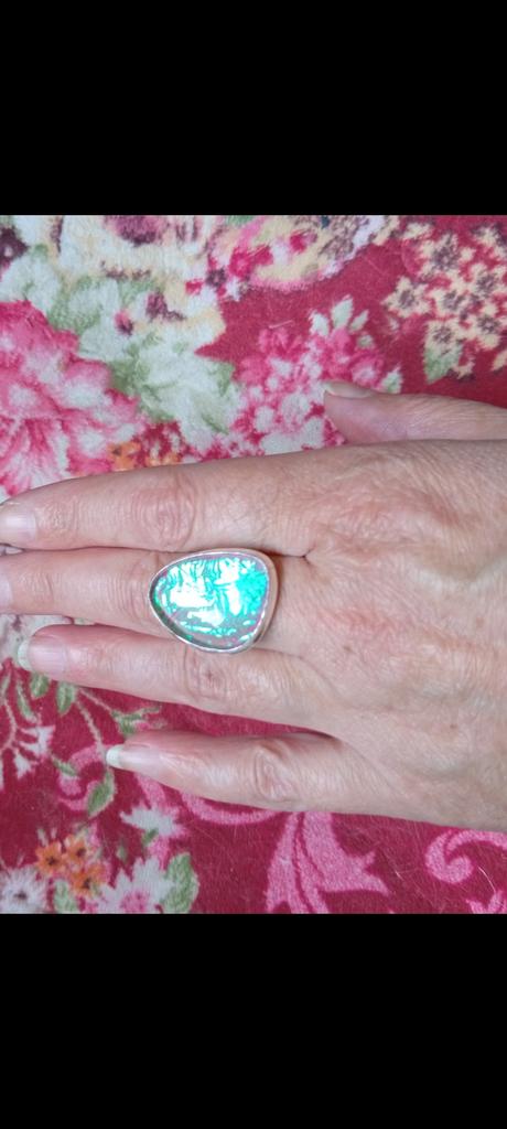 Very beautiful ring!!! Quite massive, but not rough, the opal triplet is incomparable! For size 19.5 fits #10