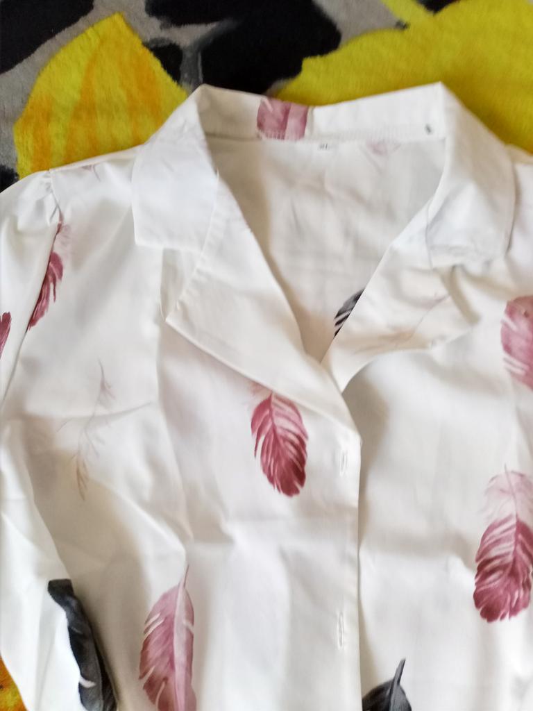 π₯ΌThe blouse with a beautiful leaf pattern. ππππππππππ β»οΈDelivery time: 21 days to Germany. β»οΈβ»οΈScope of delivery: Included in delivery is a long-sleeved casual blouse with a collar in the appropriate color and size. It is available in 3 different colors (blue, claret and white)πππin sizes from S to XL ππ I ordered the product in size S in white and it fits me great and looks very nice!!!ππππThe color is as shown. The size corresponds to the size chart. I usually wear size 36. I weigh 55kg over 167cm. (90-62-90cm). The blouse fits me perfectly! π β»οΈβ»οΈThe quality is very nice!π The blouse is perfect for everyday wear.,For the office. Very easy to combine.ππ It looks great with jeans, shorts or a skirt. I think the product is simply great for a busy style ππ. I liked the design best, namely this pattern print with leaves. It looks extraordinary.π β»οΈOn the material composition: Polyester 100% . The fabric is light and pleasant on the skin, soft and slightly stretchy. β»οΈβ»οΈ Conclusion: A super nice blouse π₯Ό that you can order in the right size. πI am very happy to recommend. 5 Stars! Thank you Joom and the seller Hi Dawn ππππππ