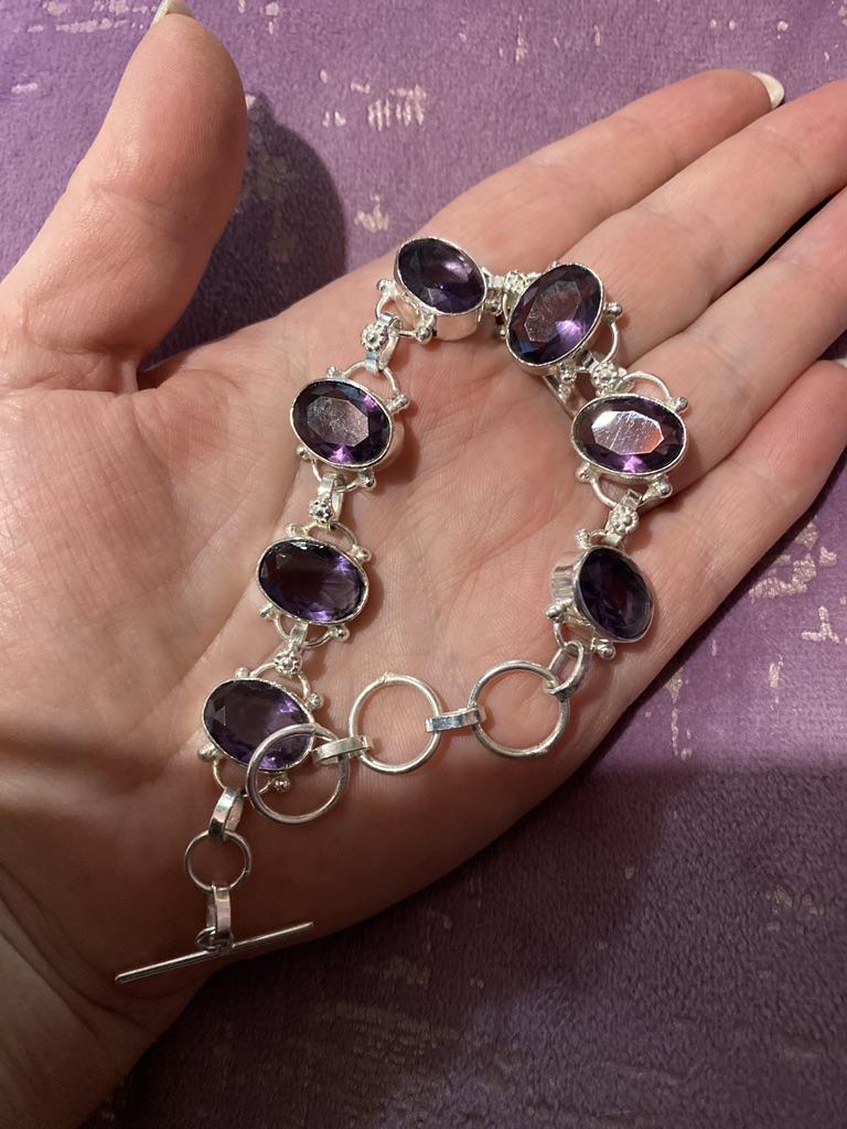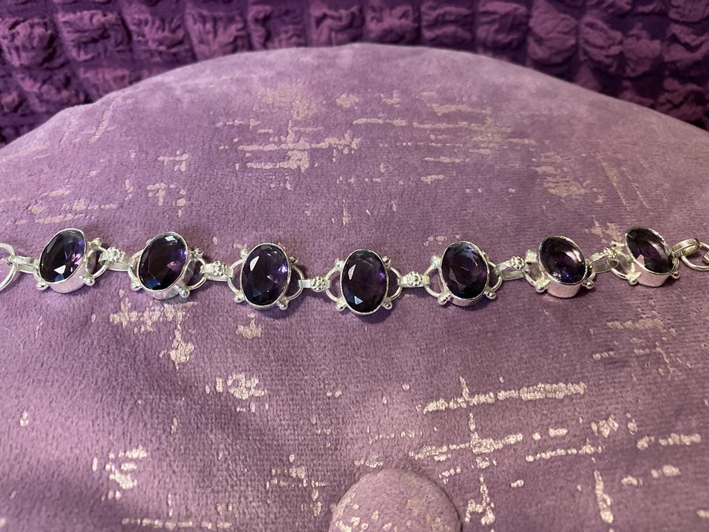 Amethyst Gemstone Handmade Solid 925 Sterling Silver Bracelet For Thanksgiving