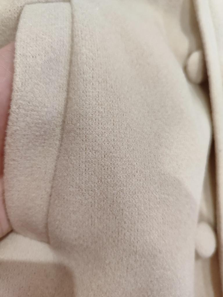 I received a wonderful coat! Everything is as in the picture! Sewn very neatly! All lines are straight! The fabric is nice! Very beautiful ! It will be great for spring and fall!