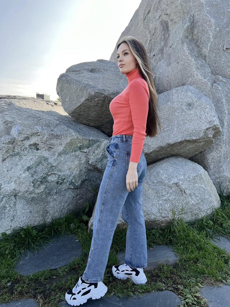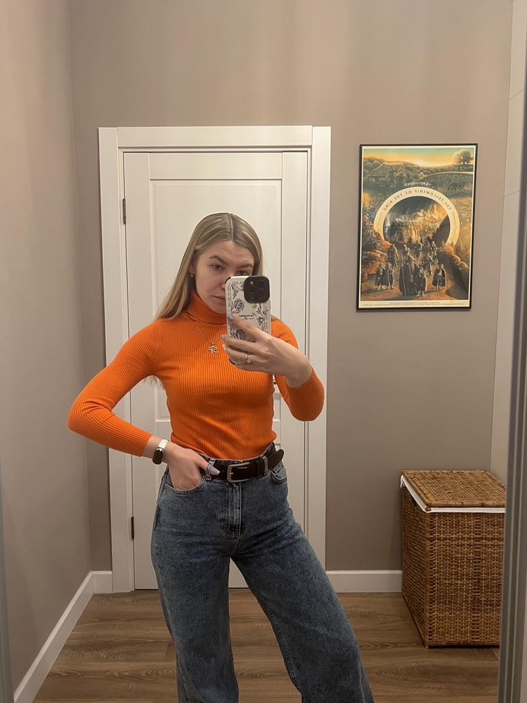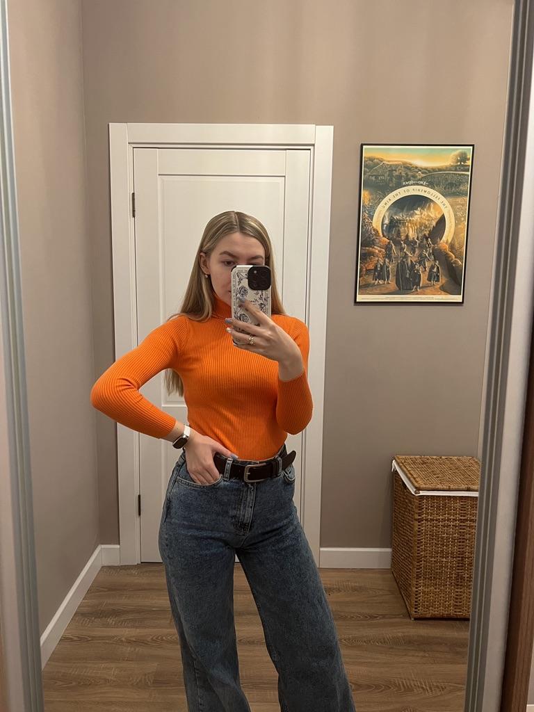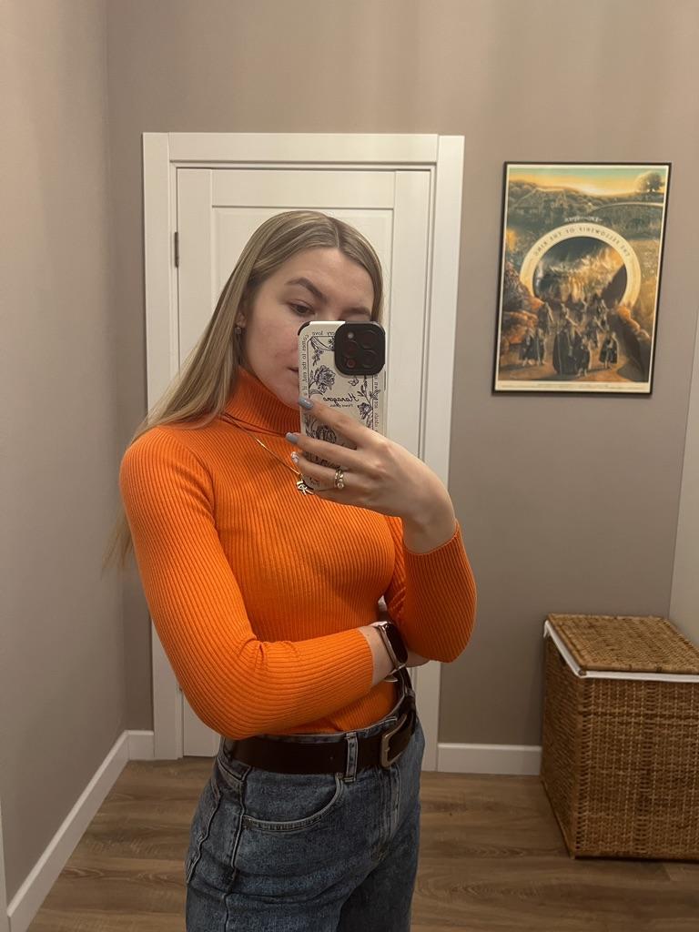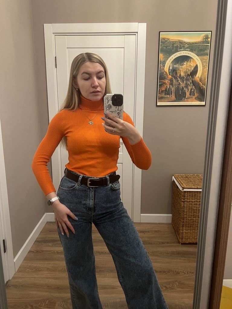 Good day everyone! This review is about a ๐ญ turtleneck. It is a brightly colored sweater made of a good stretch fabric. I bought it for my girlfriend. She is happy with it! The item was well packaged and delivered in 2 weeks. Pros: + good price + trendy style available in many colors + stretch fabric + fast delivery Negatives: - sleeves are a bit short Her dimensions: chest 84 cm, Size 66cm, hips 89cm, Bought in her usual size. See seller's description for dimensions. This style is very nice for hipsters ๐ The purchase was successful! ๐