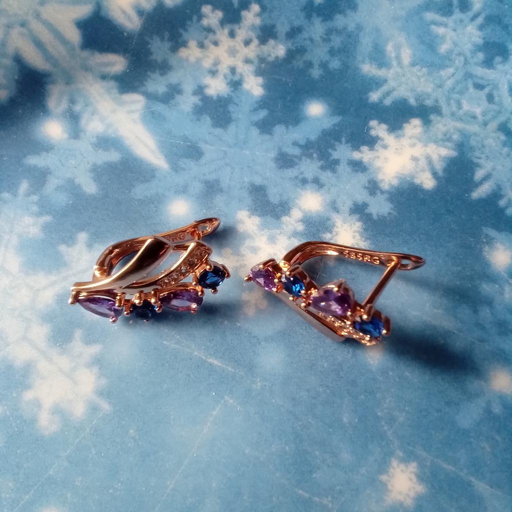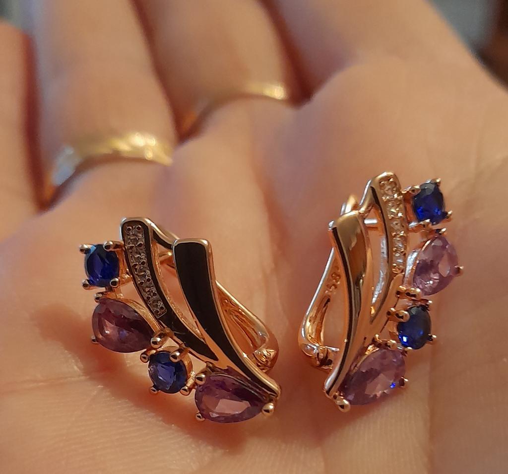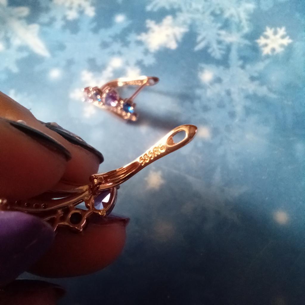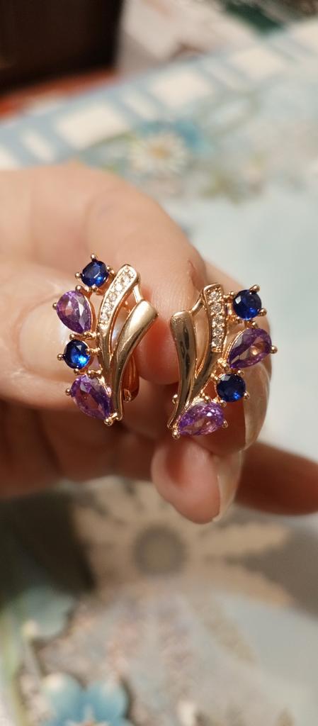 Blue Purple Zircon Geometric Design Vintage Drop Earrings for Women Elegant Wedding Party Jewelry