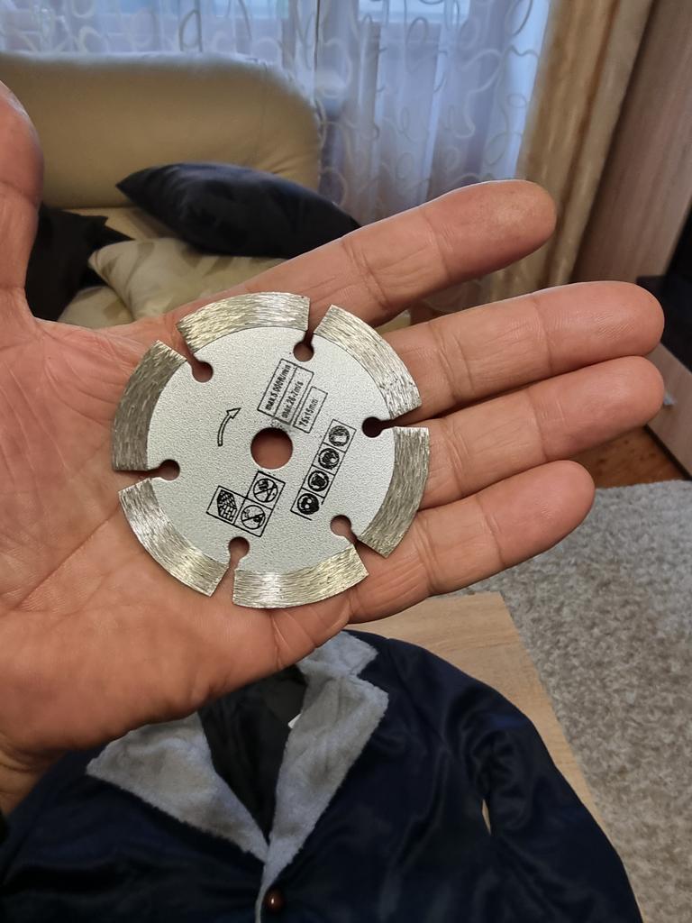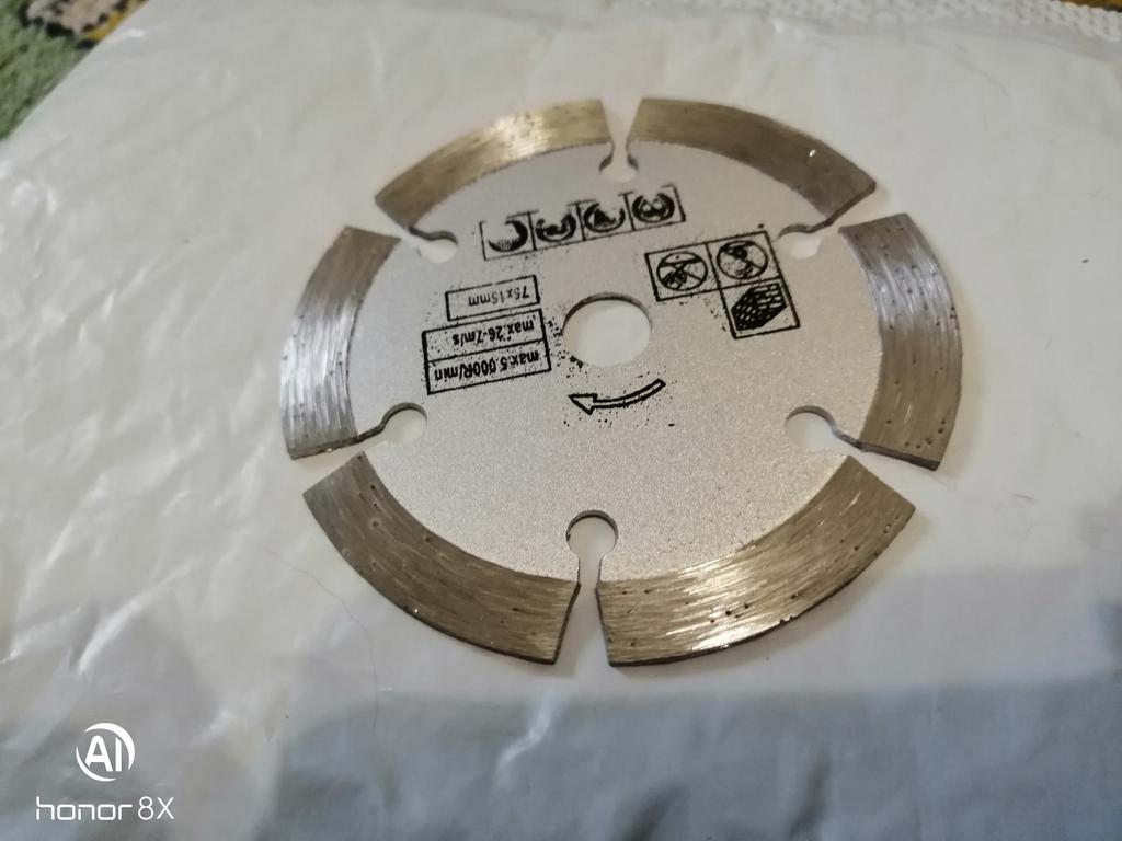 There are no offensive materials on the disk, bare iron, it does not cut but pierces the tile, once again I made sure that there are many low-quality products on the site