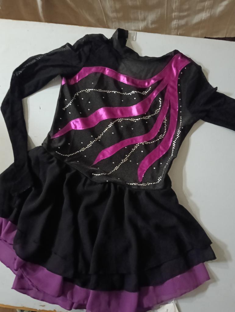 Kids Girls Long Sleeve Rhinestone Decorated Hollow Back Dance Dress Girls' Figure Ice Skating Leotard Dress