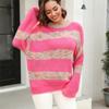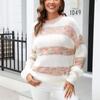 GMXIA Women's Fashion Casual Stripe Print Autumn Winter Long Sleeve O-Neck Loose Sweaters