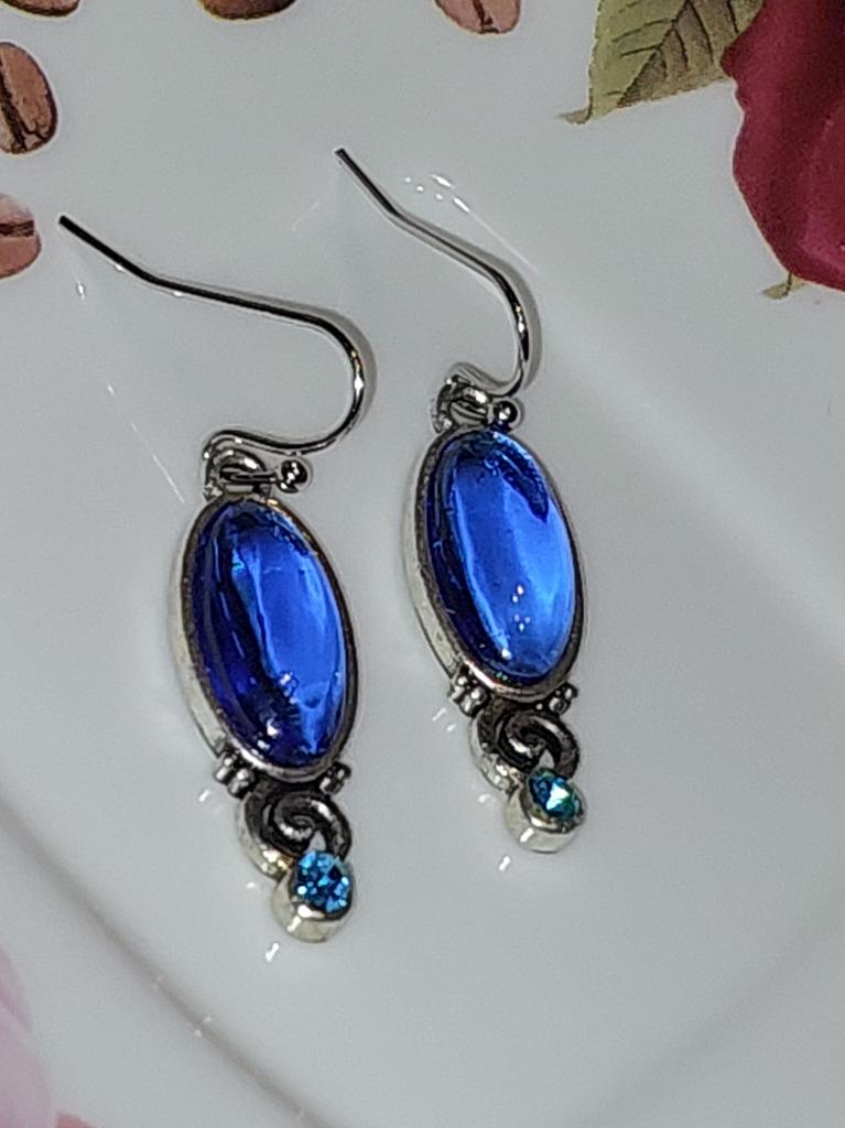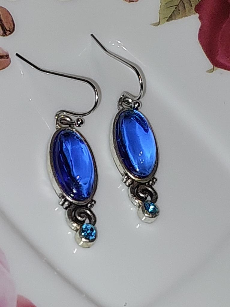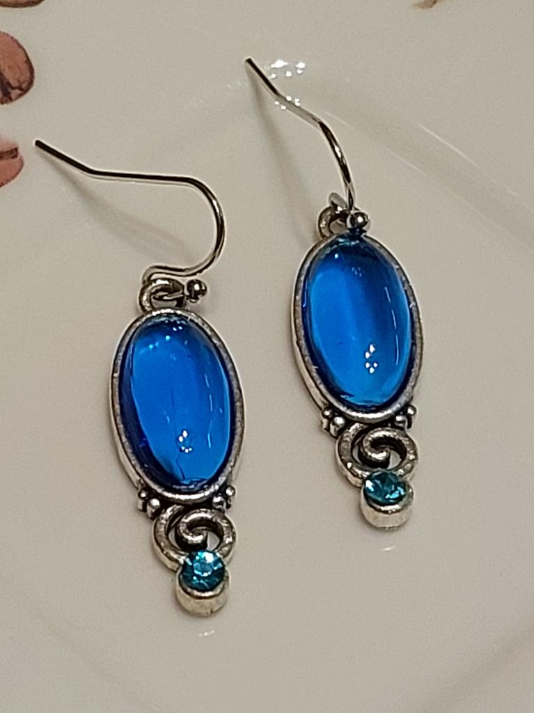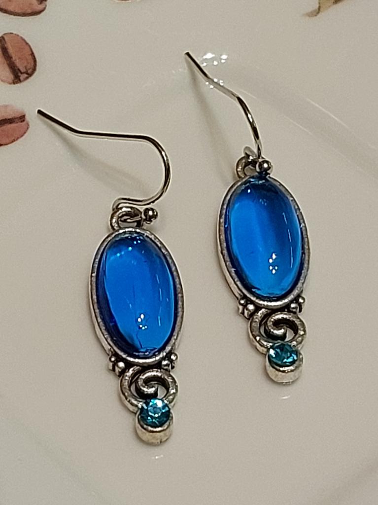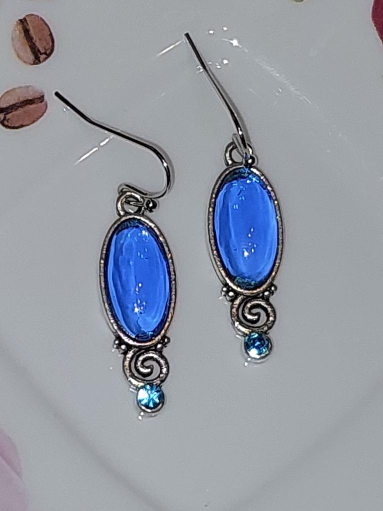 New Chic Long Oval Blue Earrings Retro Hand-decorated Hanging Earrings