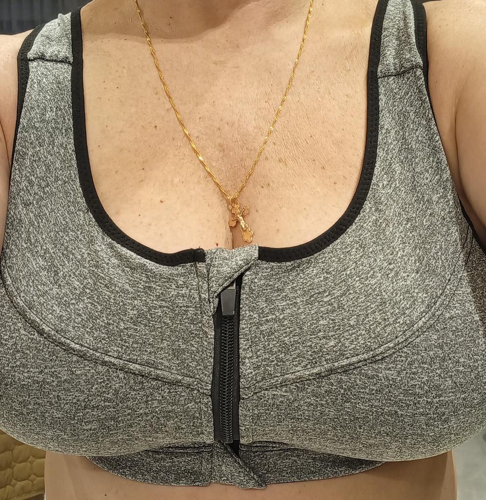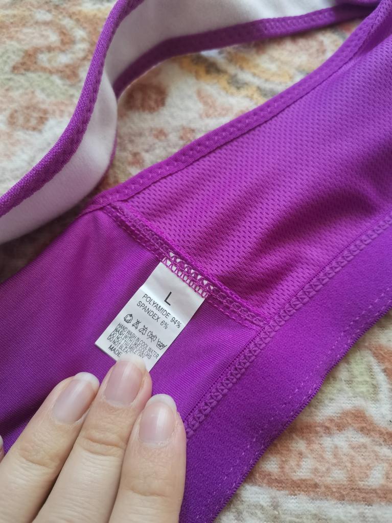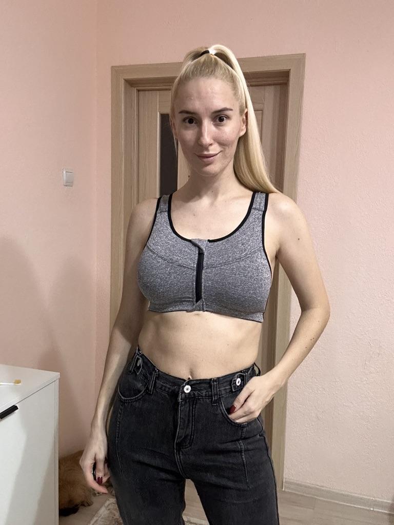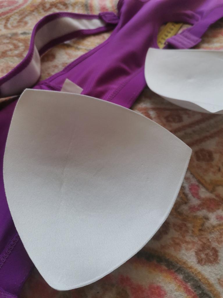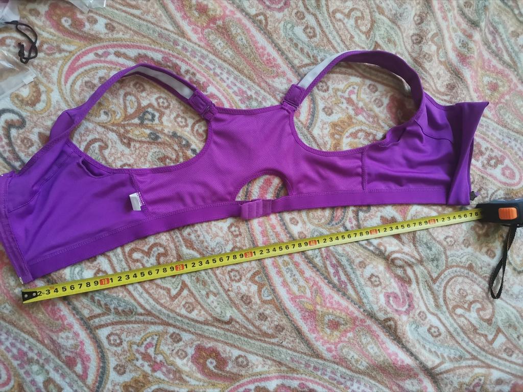 Excellent sewing, good appearance. But I would call it a top, not a bra. There are no such cups, there are hard inserts that can be removed if necessary. The chest flattens and gathers towards the center. It is possible and we can say that as a sports top it fulfills its role, the breasts do not hang out or hang down, you can jump and run.