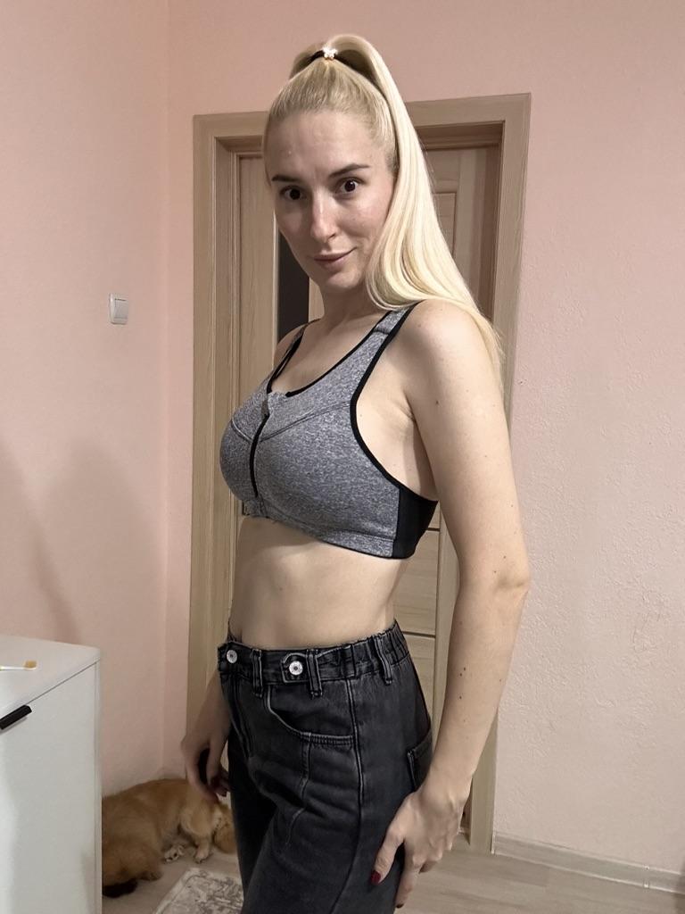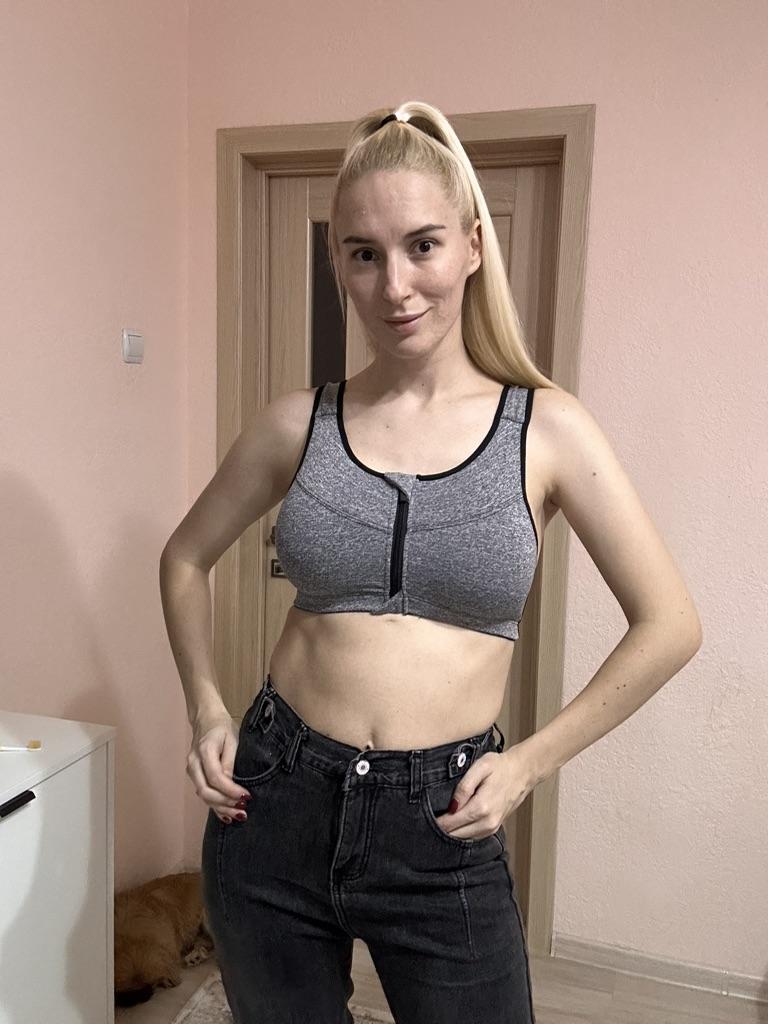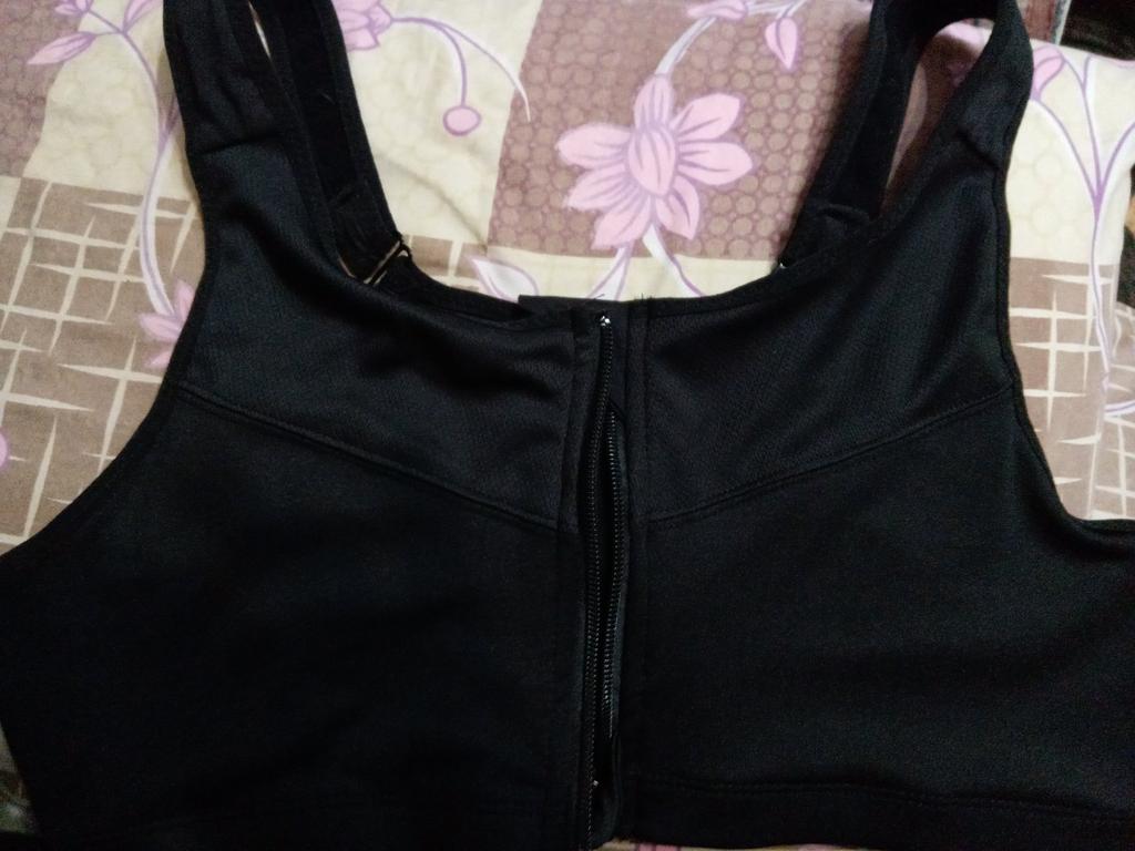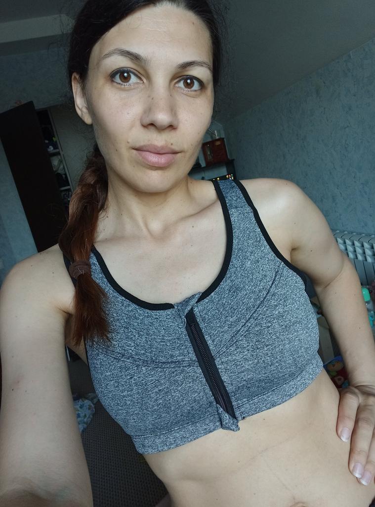 The parcel took 26 days. Nice fabric. Fastens only in the front. Fasteners on the back are only for appearance, because there is no point in them. Since I have OG108, I had to take out the tabs so that the breasts fit better. But as for sports, it will work