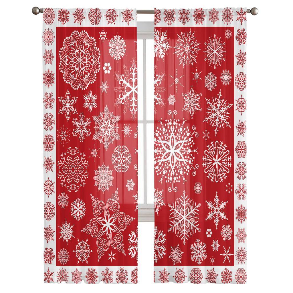 Christmas Red Snowflake Texture Living Room Transparent Tulle Window Curtain Bedroom Kitchen Decor Veil Drapes Curtains