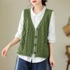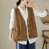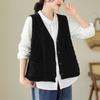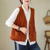 Johnature Women Vintage Sweaters Vests V-Neck Sleeveless Patchwork Pockets Coats Knitted Cotton Clothes Fall Sweaters