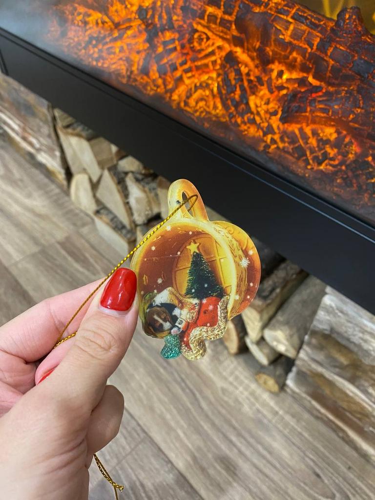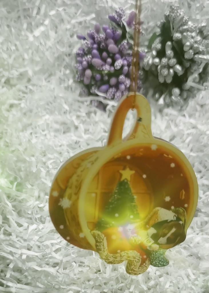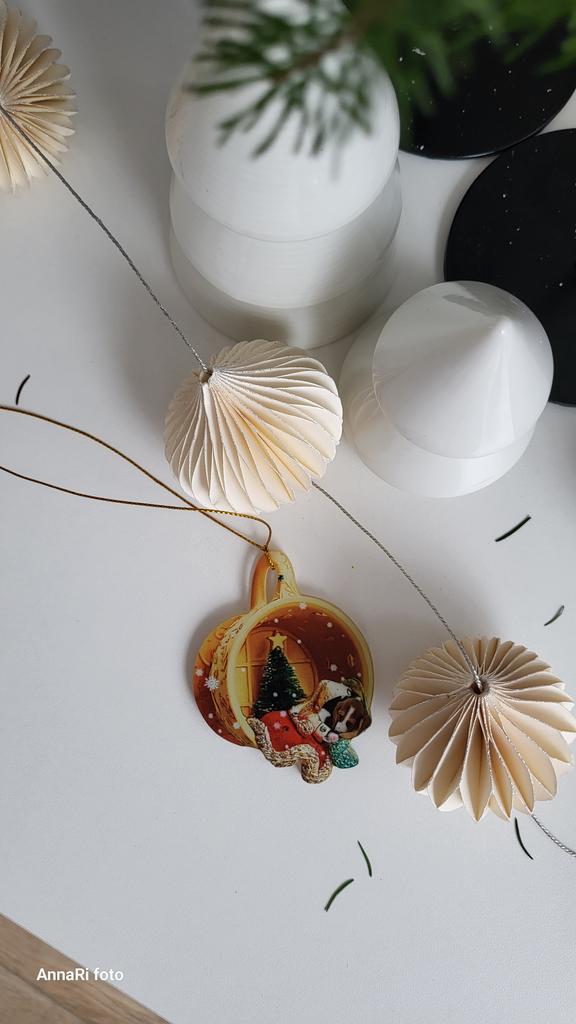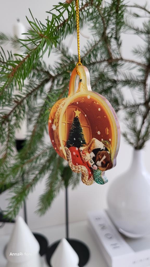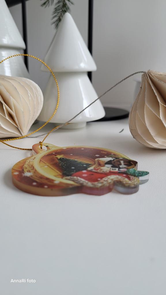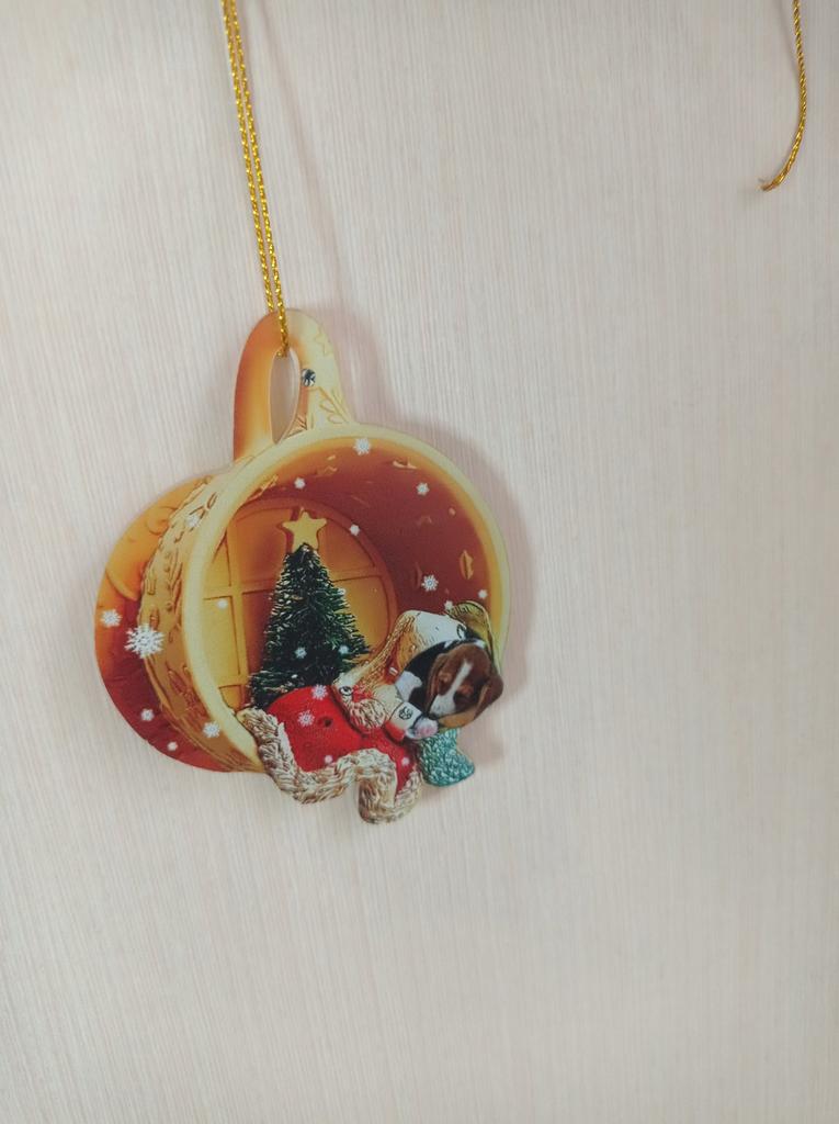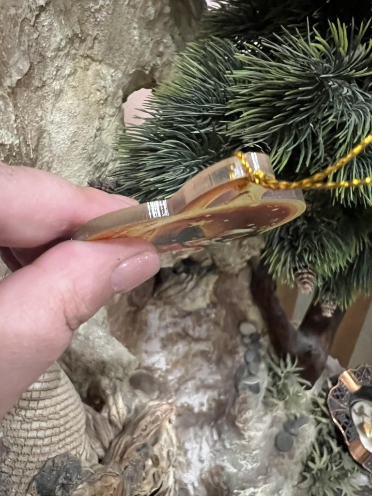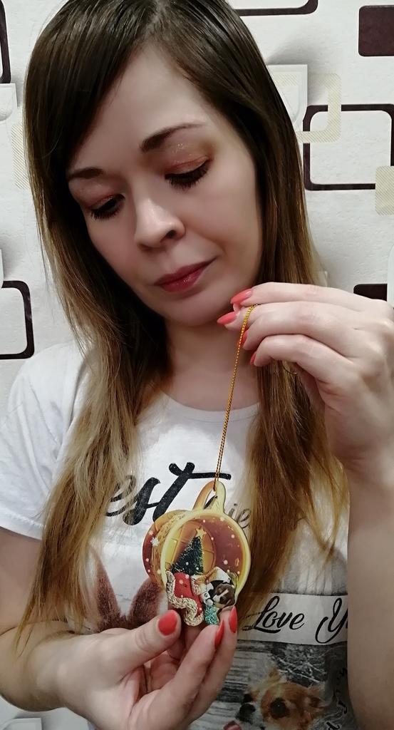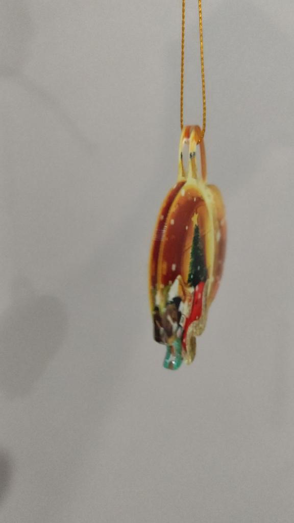 Christmas toy. I thought the toy was three-dimensional, but it is flat.))) Toy size 6*7 cm Double-sided pattern. Includes gold rope. The drawing is clear and beautiful. The toy is made of acrylic. There will be a New Year's decoration on the tree
