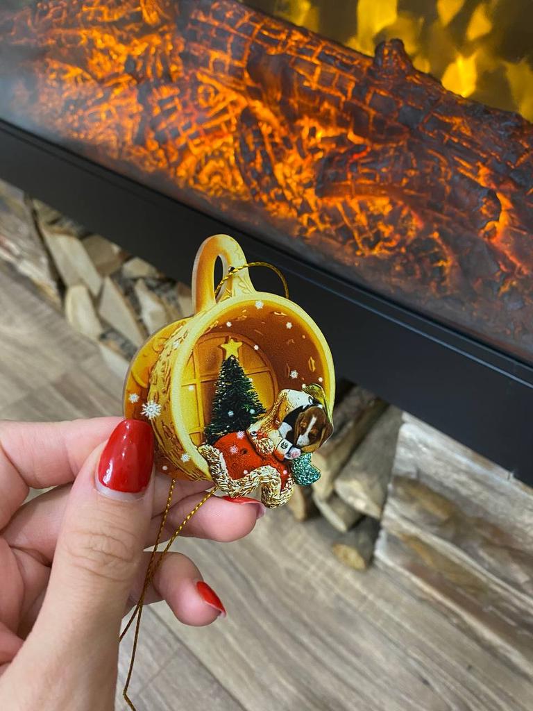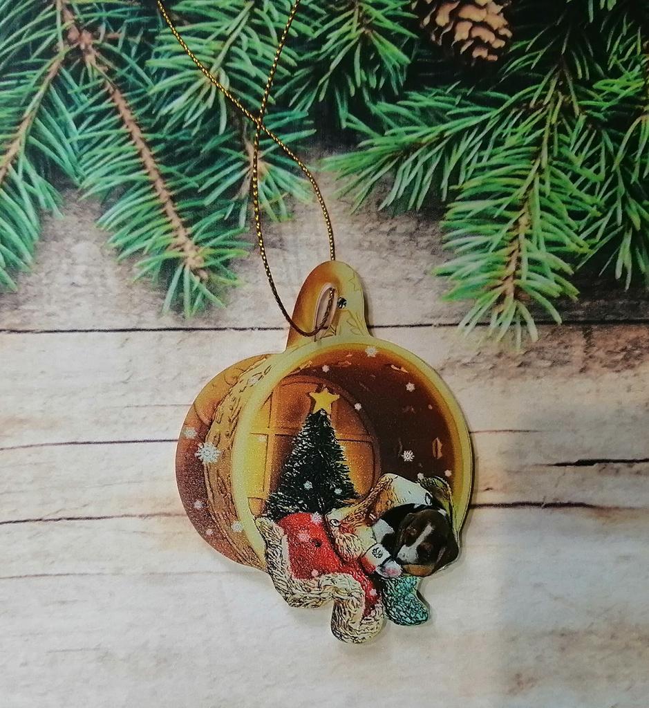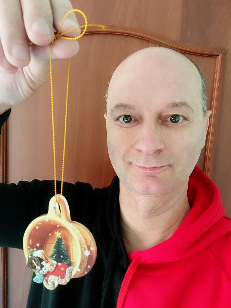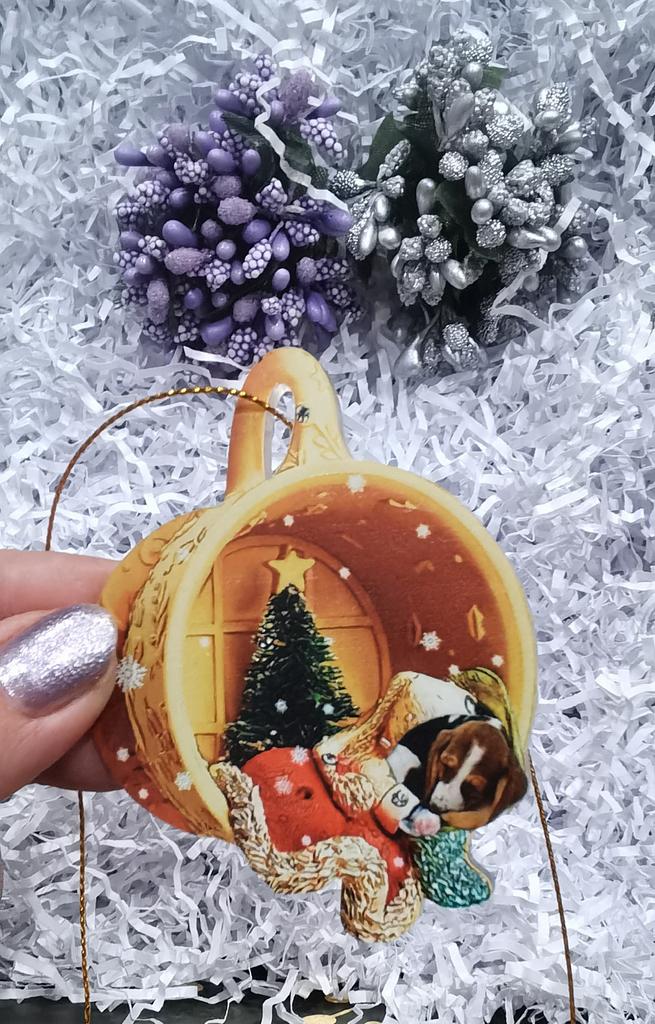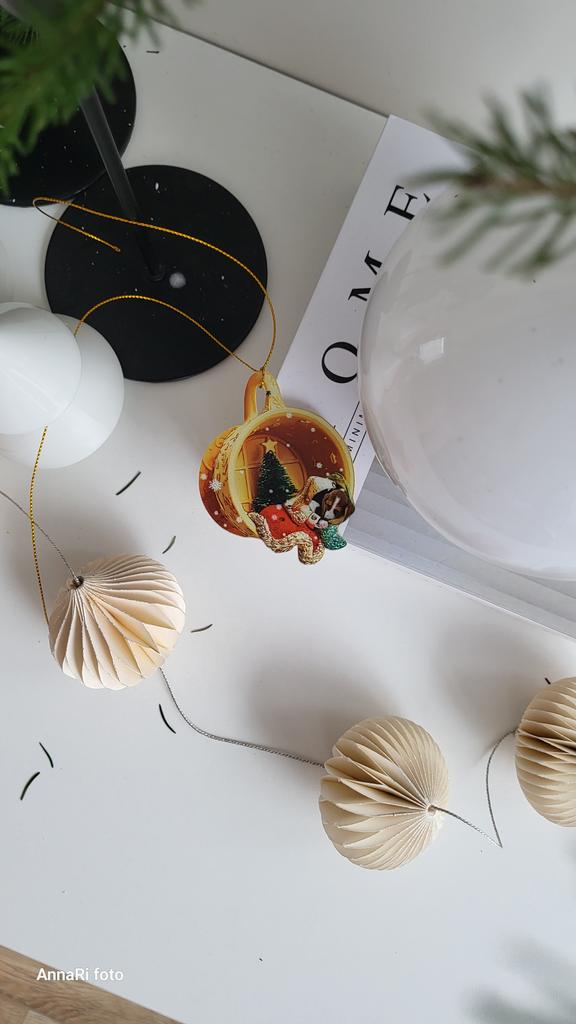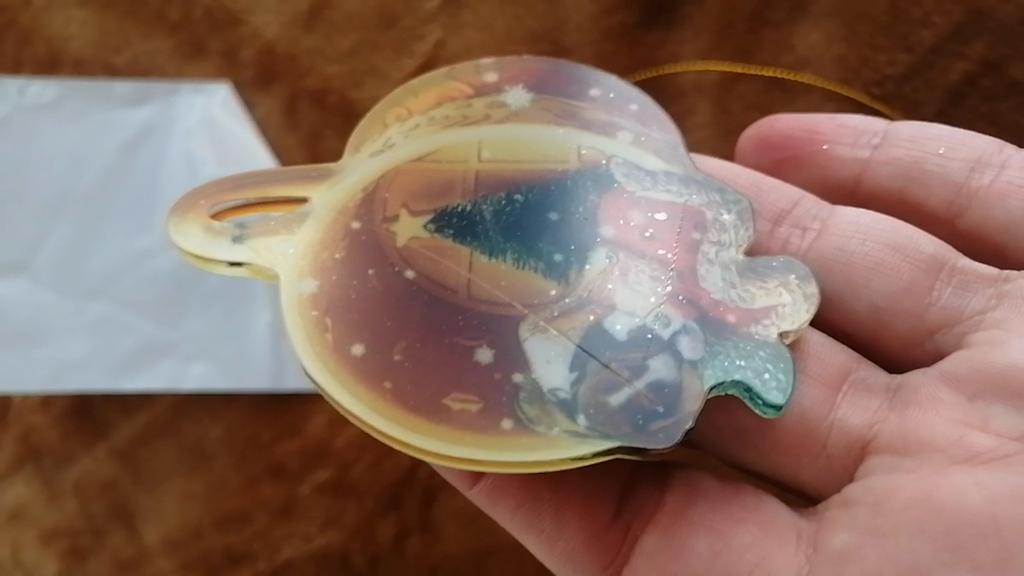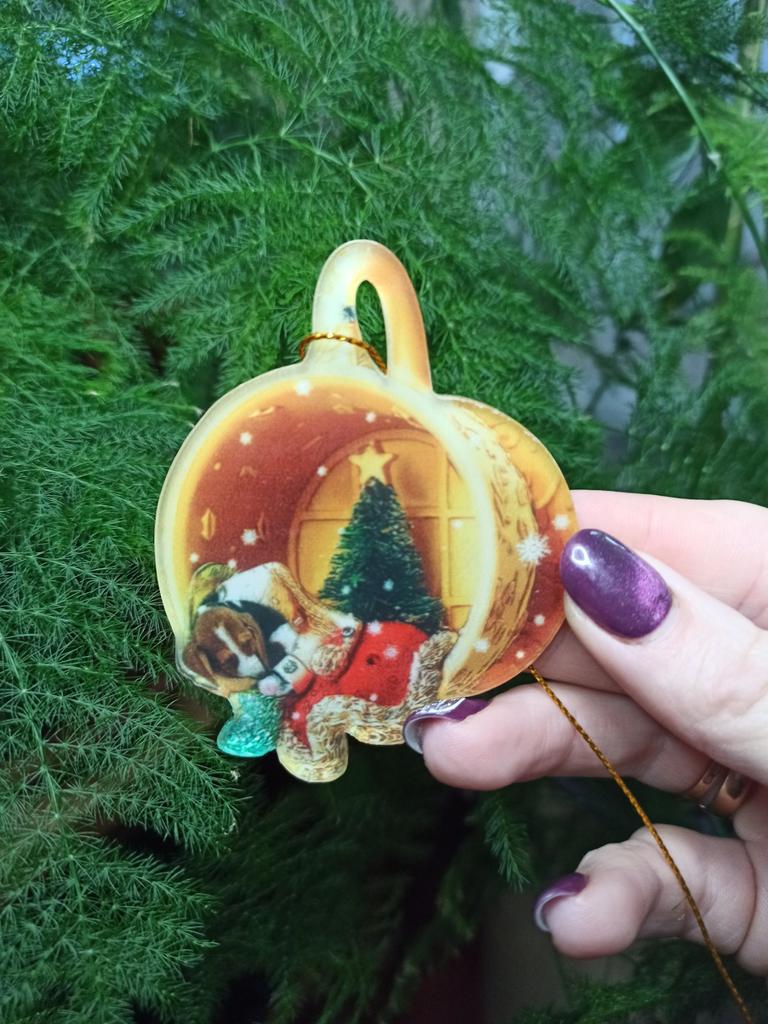 Christmas toy. I thought the toy was three-dimensional, but it is flat.))) Toy size 6*7 cm Double-sided pattern. Includes gold rope. The drawing is clear and beautiful. The toy is made of acrylic. There will be a New Year's decoration on the tree