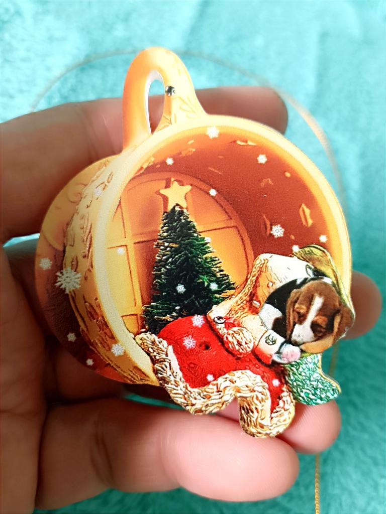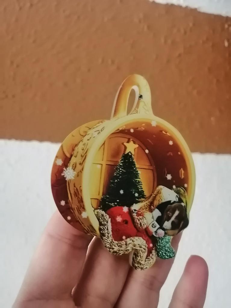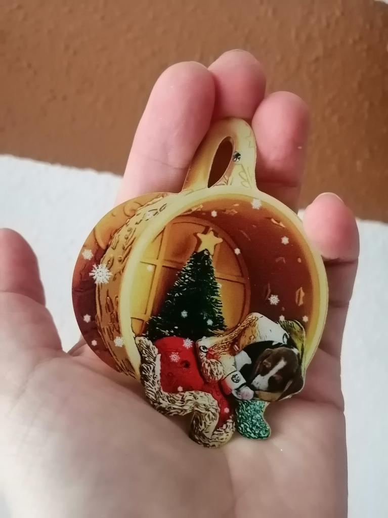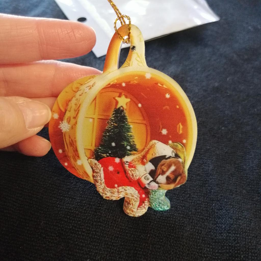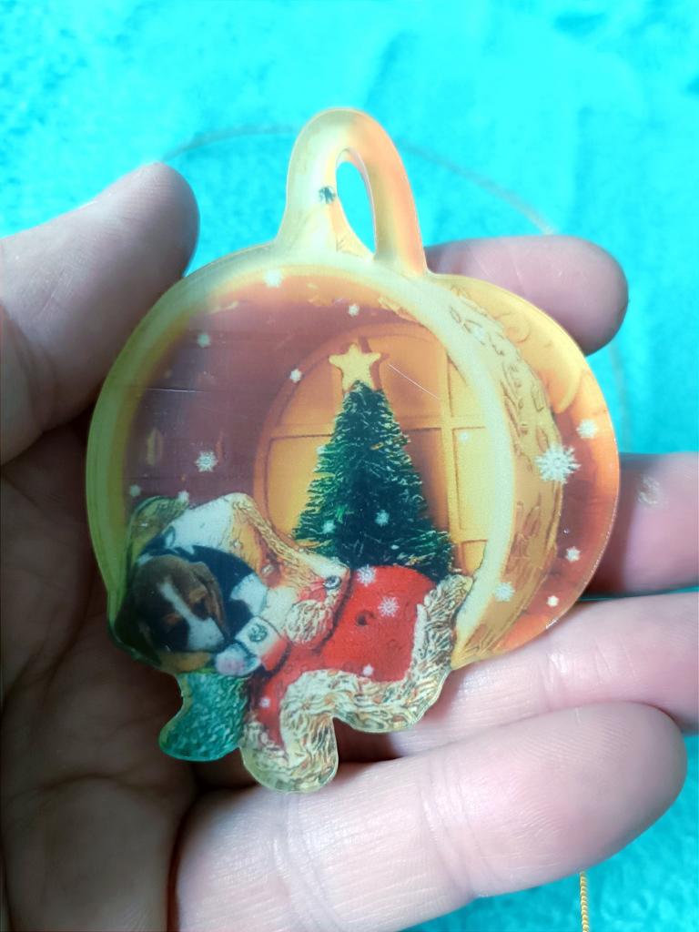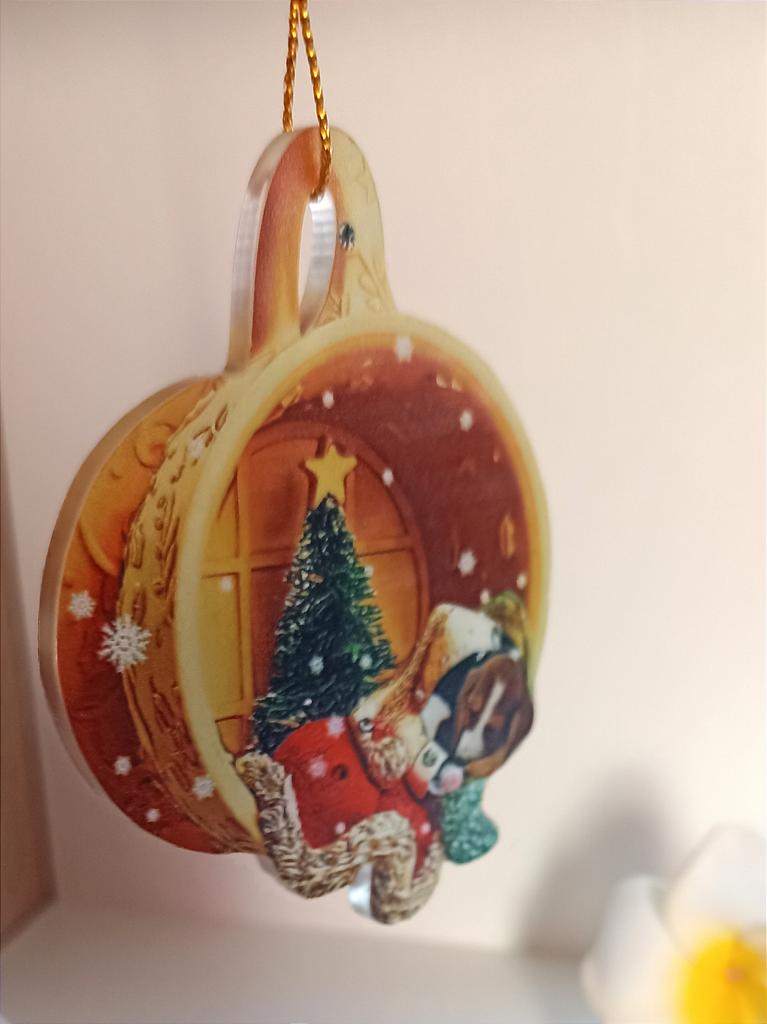 CHRISTMAS DECORATION For next Christmas I discovered how to personalize my tree, I found this adorable decoration to hang. The visual effect is three-dimensional, in reality the round disk is flat, a couple of millimeters thick. Comes with gold cord. Available in 21 variations all themed with dog. Package arrived in Italy with tracked shipping in 16 days. Packaged in bubble wrap, it arrived perfectly intact. Circular shape with a diameter of 6 cm Recommended purchase 👍