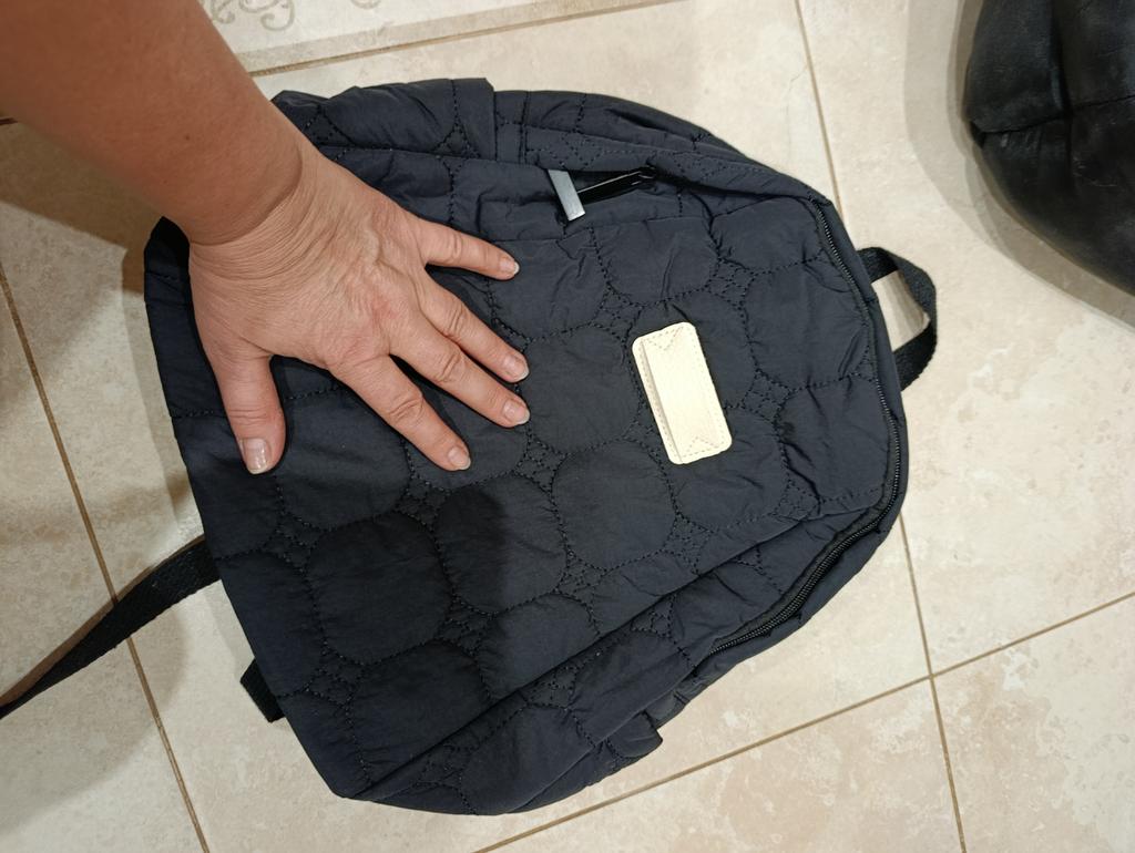 I liked the backpack, the color, the size, everything is as described. The fabric resembles a raincoat. Sewn well, threads do not stick out, there is no smell. There are no inside pockets with a lock, only two compartments. On the "back" part, it's like a rubber band is inserted and the whole backpack keeps its shape.