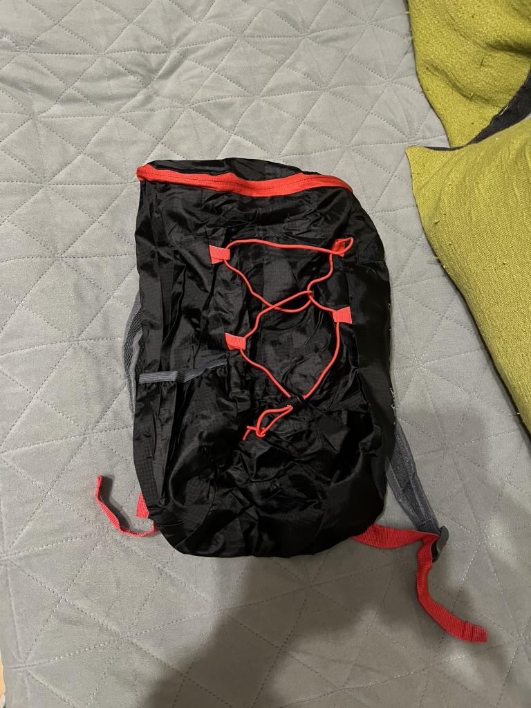 An excellent backpack, waterproof, and takes up very little space when assembled.