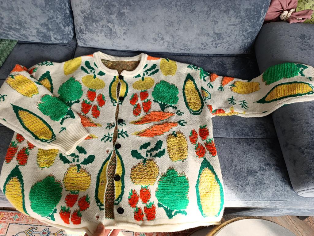 Lightweight, interesting, medium thickness cardigan.