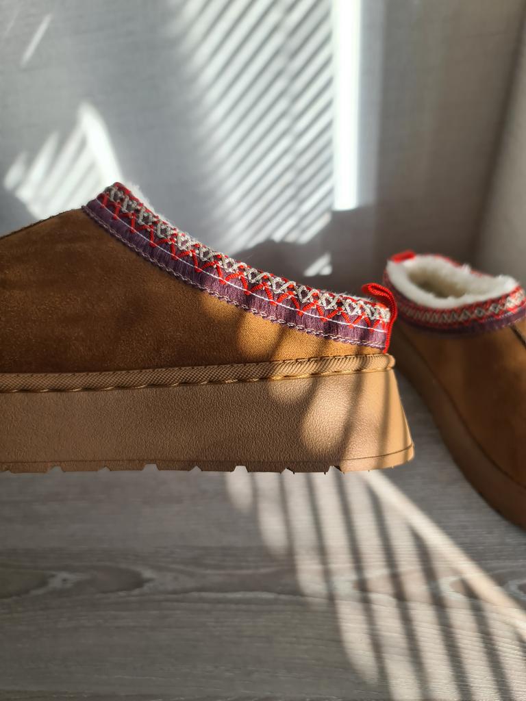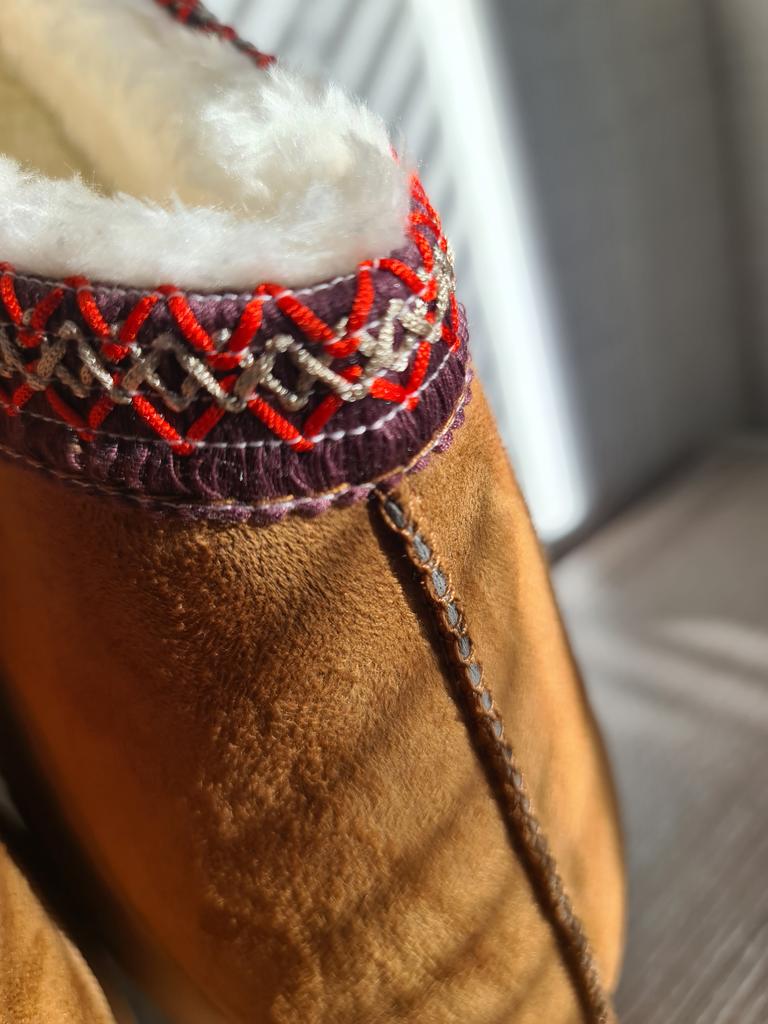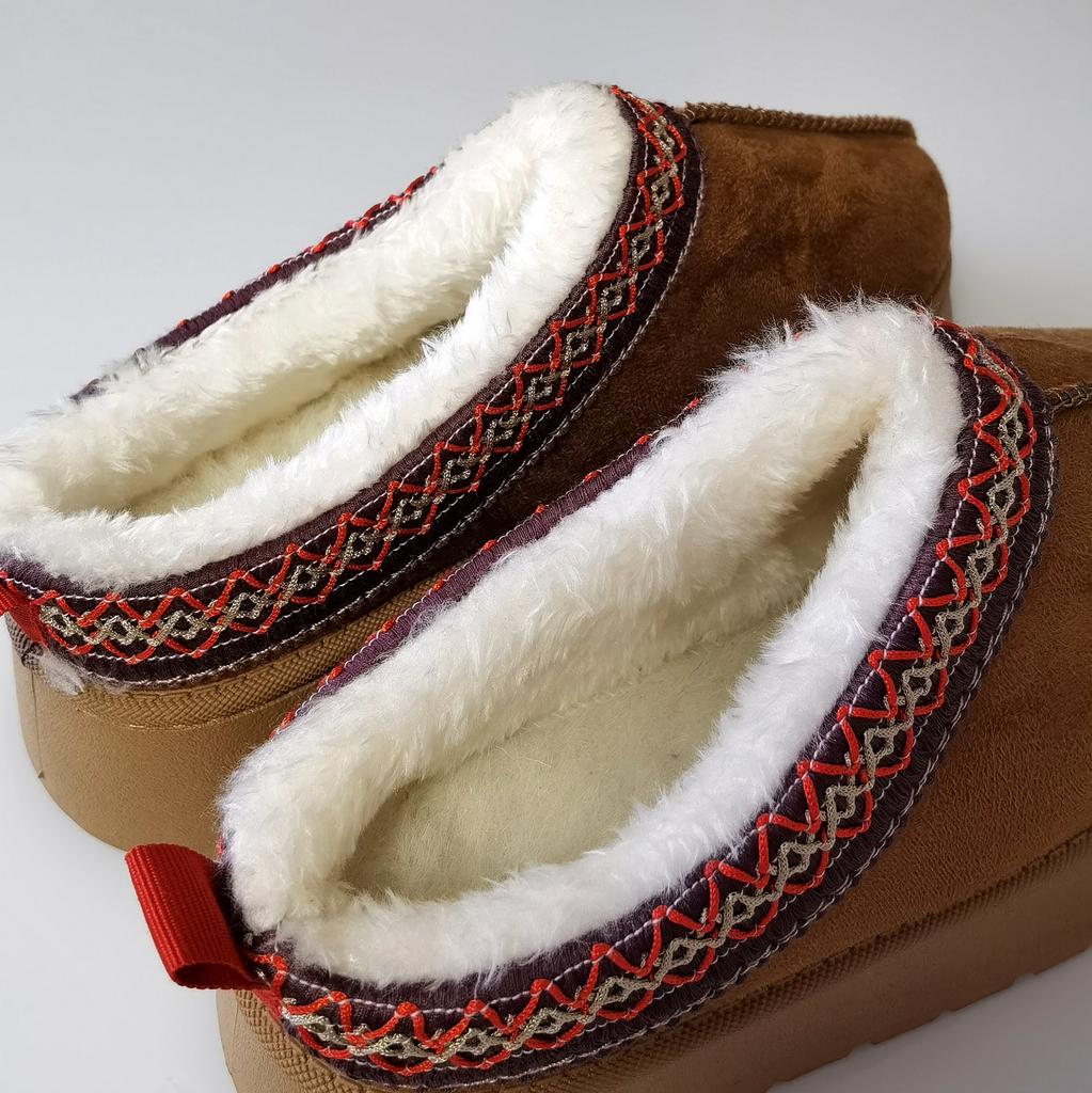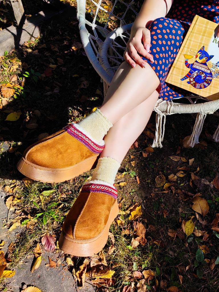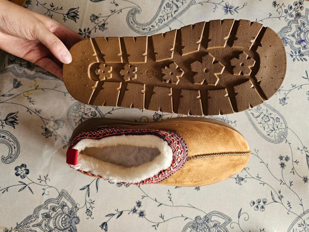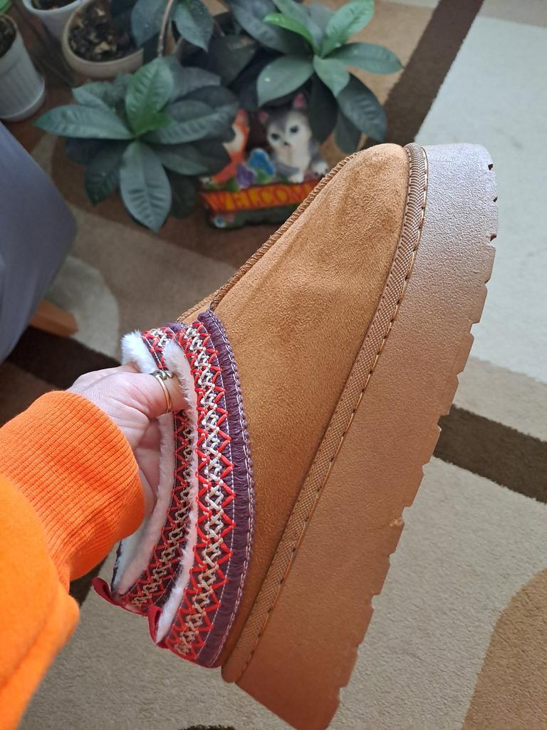 Short warm boots from TUINANLE ♥️ I have regular house slippers, but I needed an insulated version of the house shoes. My foot size is 24.5 cm, the size 39 declared by the seller suited me perfectly. 。Thick and rubberized sole, which is stitched with threads. Indeed, this is not just glue in threads. 。Scandinavian embroidery design on suede fabric is ideal for creating a creative look. 。The inside of these shoes is very warm and cozy with white faux fur. ♥️ These shoes are completely harmonious: the shoes are not heavy and not too light, they are very soft and pleasant on the foot. I enjoy going into their home and running outside to take out the trash or buy food at the store 24 hours a day. 🫶 I recommend these short boots to girls and women, both for home use and for walking in the cool season. These shoes are great for a basic wardrobe or creating a creative Scandinavian look.