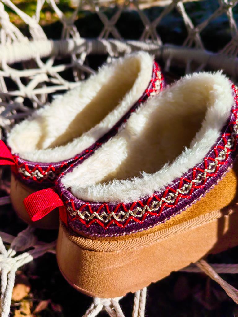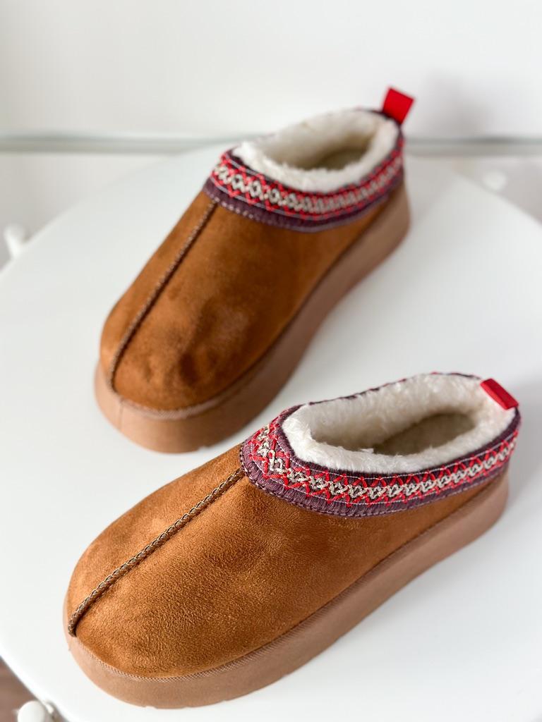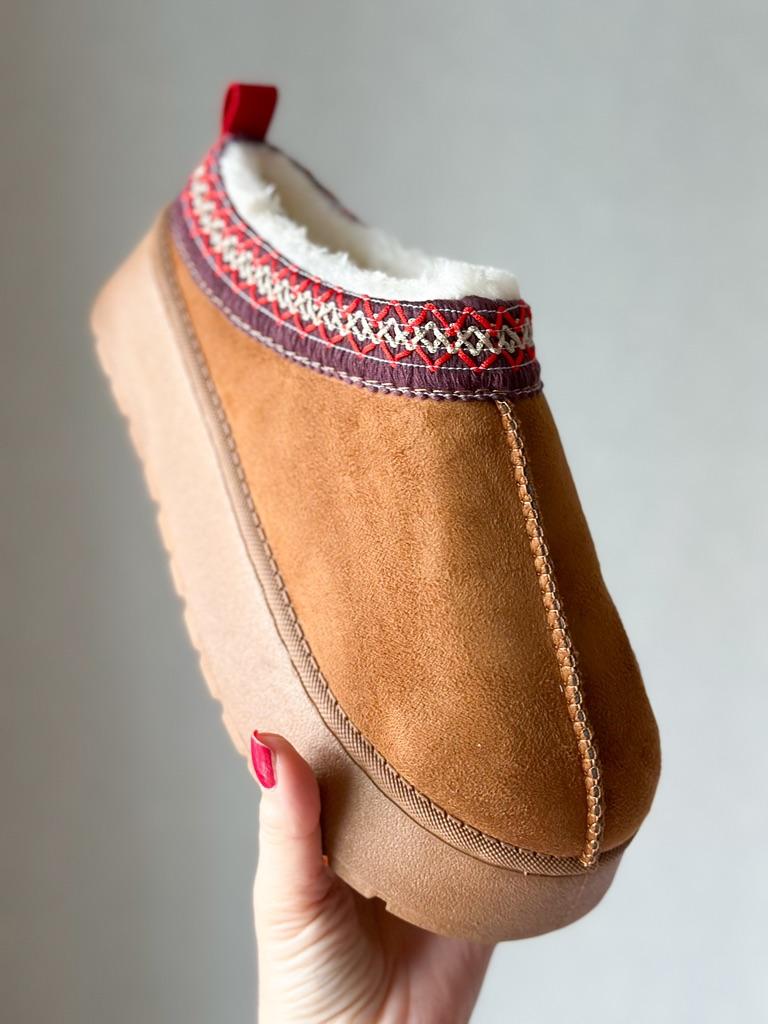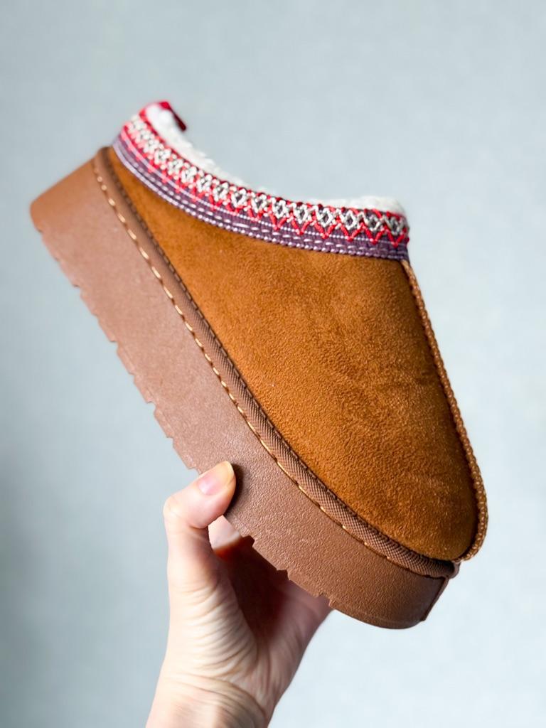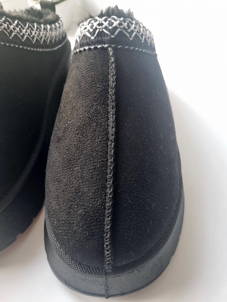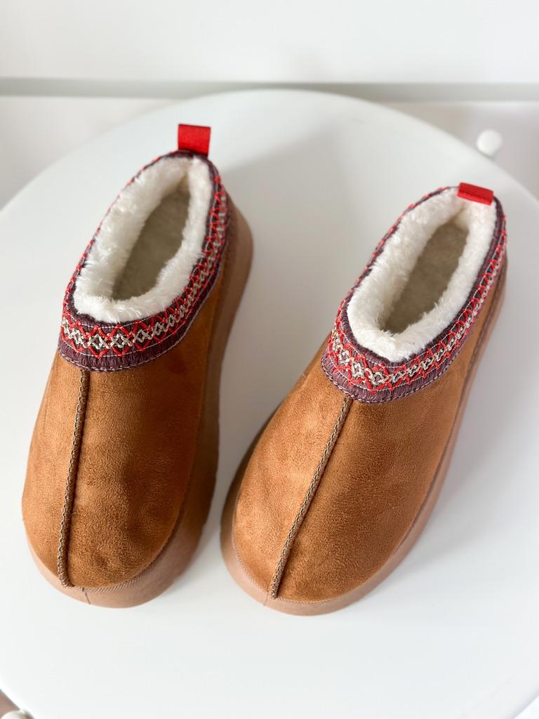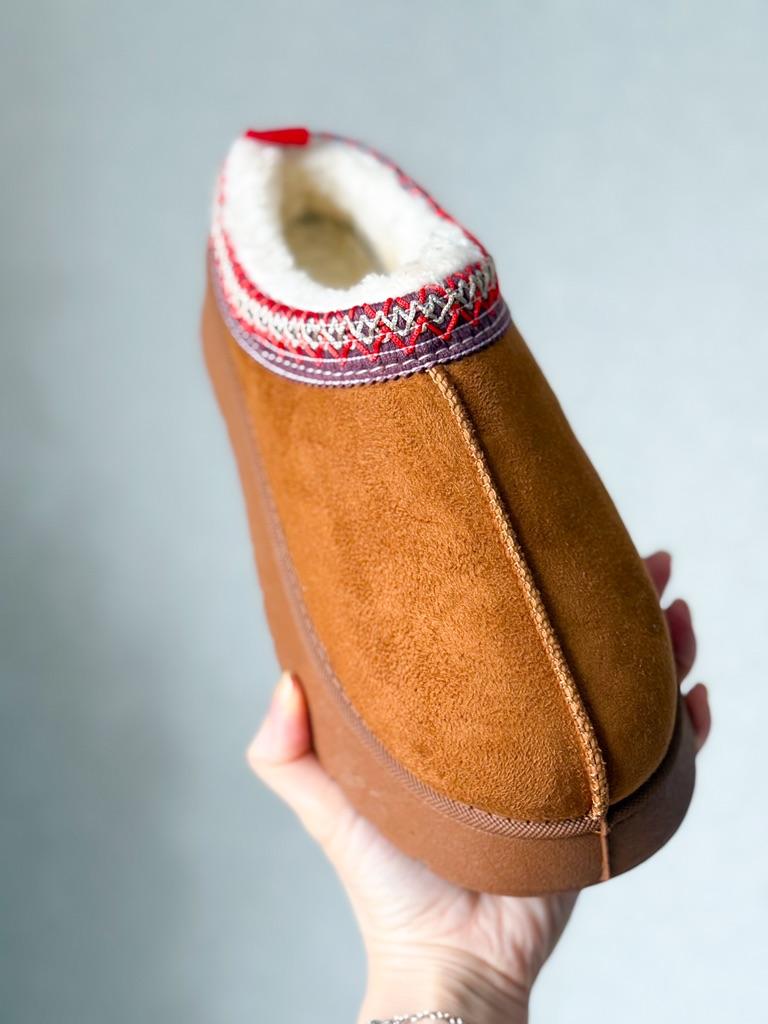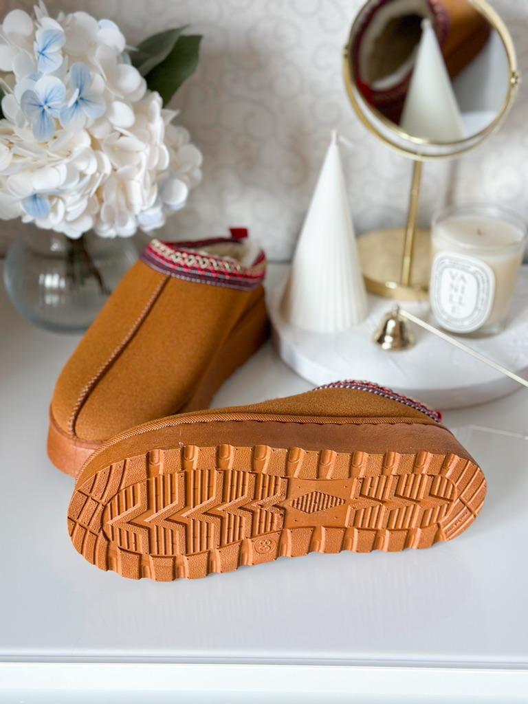 * Platform slippers with teddy fur in UGG - STYLE* 💥𝗟𝗶𝗲𝗳𝗲𝗿𝘇𝗲𝗶𝘁 15 DAYS to Germany 💥𝗟𝗶𝗲𝗳𝗲𝗿𝘂𝗺𝗳𝗮𝗻𝗴 The delivery includes 1 pair of shoes in the corresponding color and size. The shoes are available in three different colors (khaki, black and brown) in sizes 35 to 42. I ordered the shoes in size 41 in brown. I normally wear a size 40, but these shoes run a little smaller... 💥𝗤𝘂𝗮𝗹𝗶𝘁ä𝘁 I was impressed by the quality of the shoes... there are no threads sticking out or any glue residue sticking out. The shoes are really well made. There is also teddy fur on the inside. From the outside there is a beautiful decorative border in indie - hippie style. They remind you a little of the classic ugg boots. I would only wear these shoes as slippers. They are really an eye-catcher and are very comfortable. I particularly like the platform sole and the cuddly soft teddy fur. For material composition : Unknown It could be that the upper material is made of suede. 💥𝗙𝗮𝘇𝗶𝘁 Mega beautiful platform boots with teddy fur. They are really well made, but I recommend ordering 1 size larger!