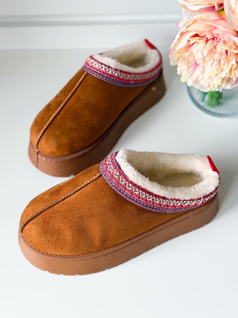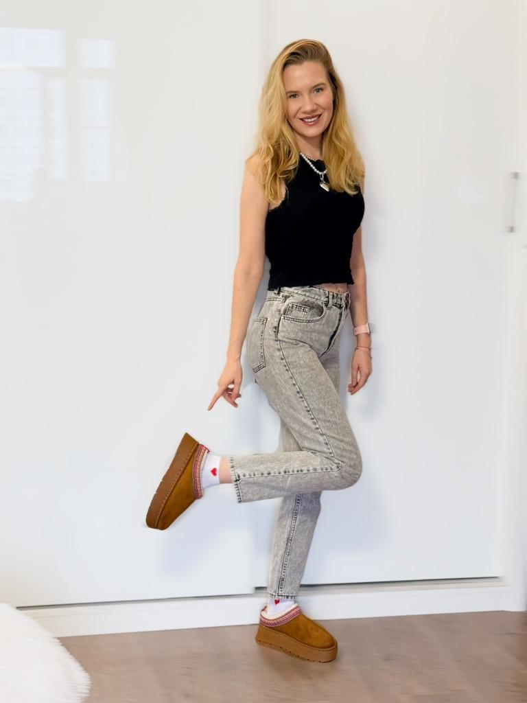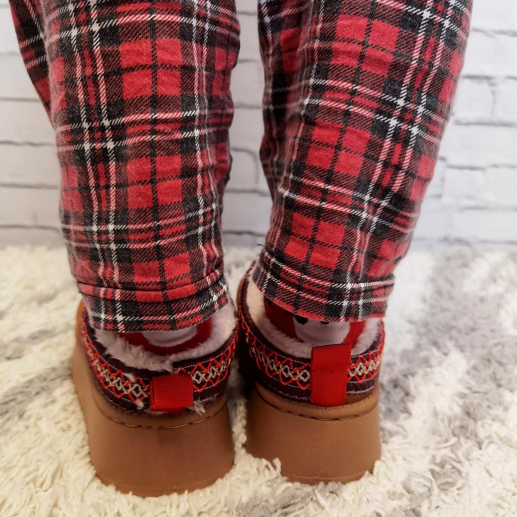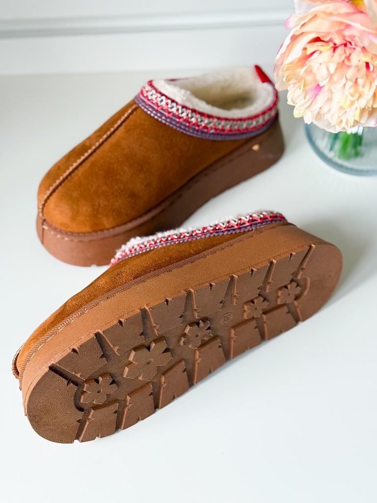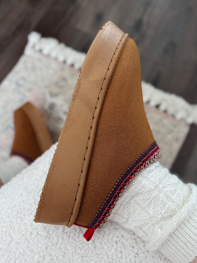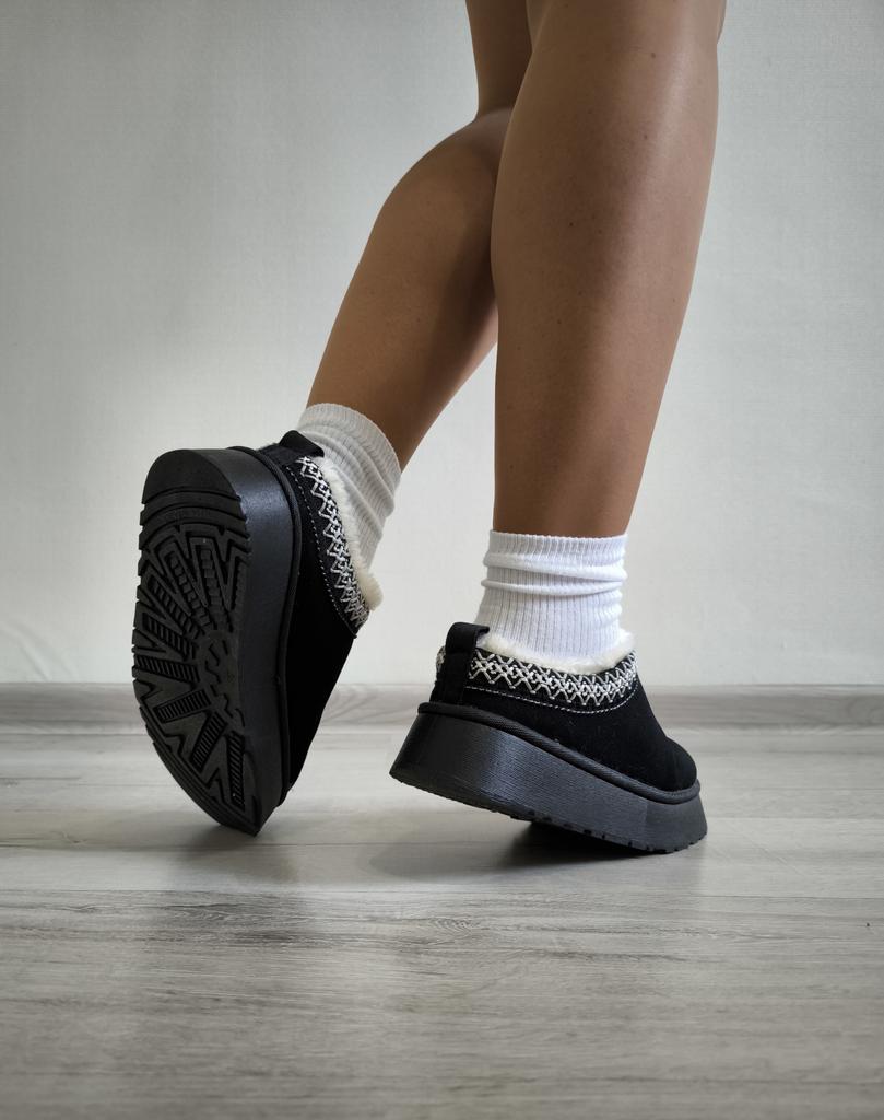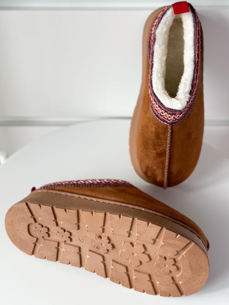 * Platform slippers with teddy fur in UGG - STYLE* 💥𝗟𝗶𝗲𝗳𝗲𝗿𝘇𝗲𝗶𝘁 15 DAYS to Germany 💥𝗟𝗶𝗲𝗳𝗲𝗿𝘂𝗺𝗳𝗮𝗻𝗴 The delivery includes 1 pair of shoes in the corresponding color and size. The shoes are available in three different colors (khaki, black and brown) in sizes 35 to 42. I ordered the shoes in size 41 in brown. I normally wear a size 40, but these shoes run a little smaller... 💥𝗤𝘂𝗮𝗹𝗶𝘁ä𝘁 I was impressed by the quality of the shoes... there are no threads sticking out or any glue residue sticking out. The shoes are really well made. There is also teddy fur on the inside. From the outside there is a beautiful decorative border in indie - hippie style. They remind you a little of the classic ugg boots. I would only wear these shoes as slippers. They are really an eye-catcher and are very comfortable. I particularly like the platform sole and the cuddly soft teddy fur. For material composition : Unknown It could be that the upper material is made of suede. 💥𝗙𝗮𝘇𝗶𝘁 Mega beautiful platform boots with teddy fur. They are really well made, but I recommend ordering 1 size larger!