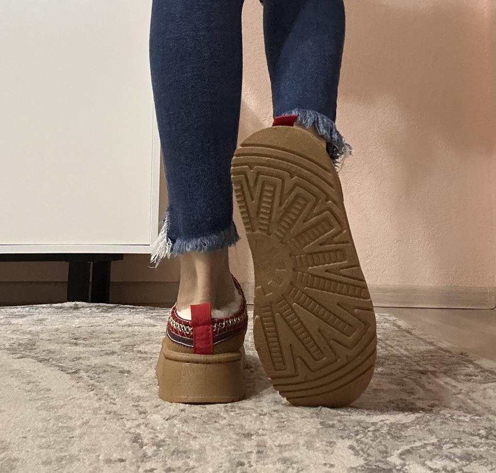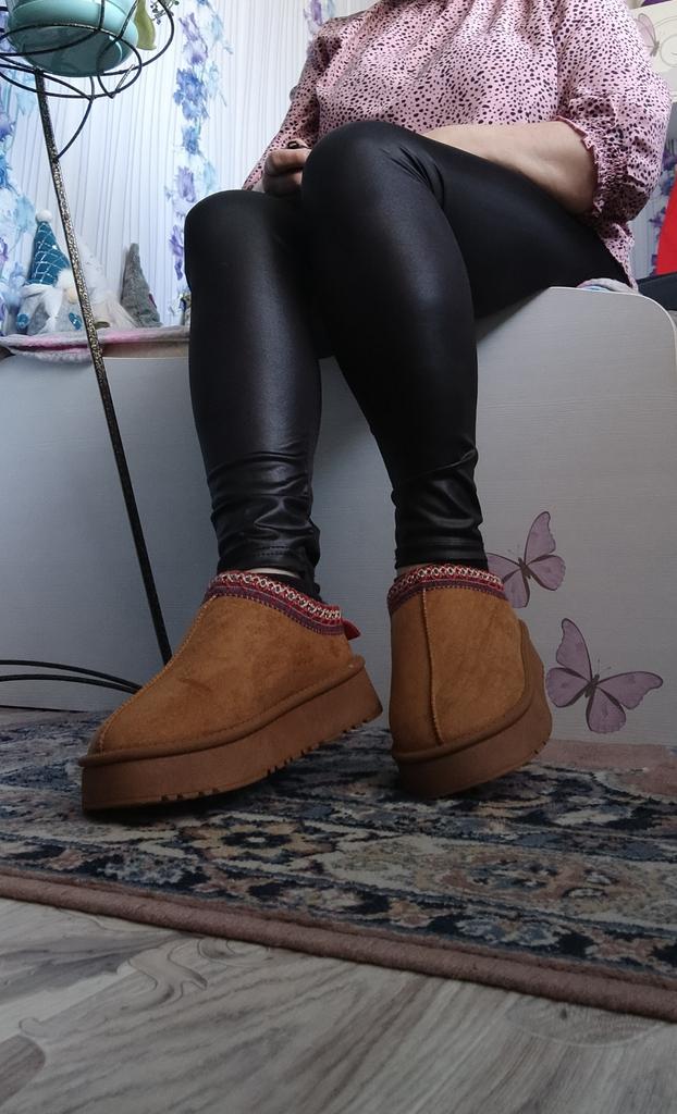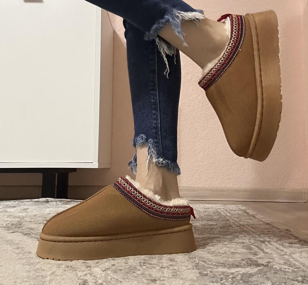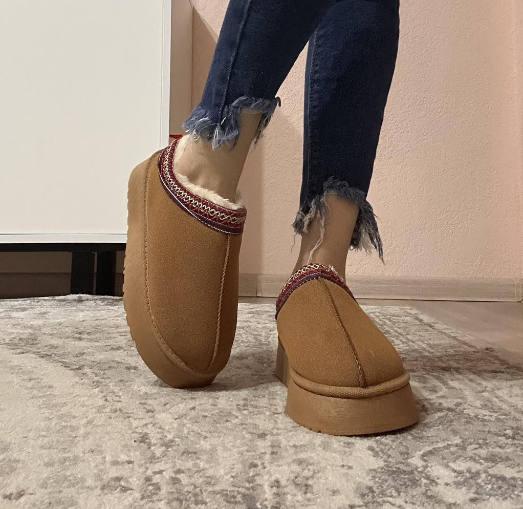 An excellent analogue, you know which brand Awesome tapuli. Sewn super high quality No traces of glue Inside is sheepskin (I don’t know if it’s natural or not). Insanely warm and soft Platform is comfortable. Yes, the heel may pop out when walking, but overall it’s comfortable. For feet 23.5 cm size 38 is ideal. Recommended to buy ❤️