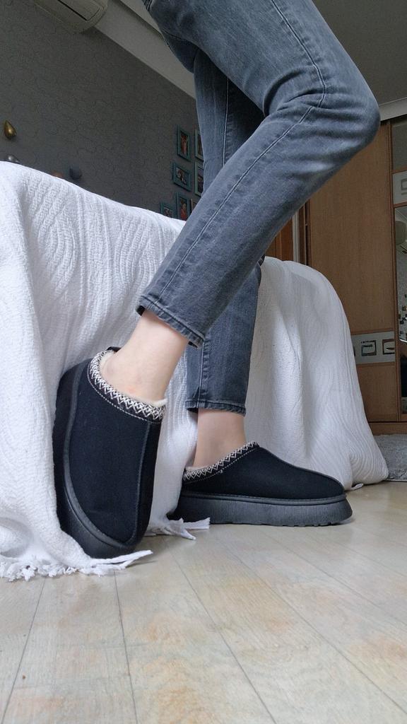 Very warm winter slippers ❄️ Nice fabric outside and inside. On the outside, the material is very sticky so as not to let excess moisture through. In the middle, they are like a cloud☁️ very soft and warm. The shoes arrived without too much smell Recommend ✨