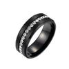8mm Wide Single Row Full Diamond Zircon Ring Electroplated Black Stainless Steel Pair Ring