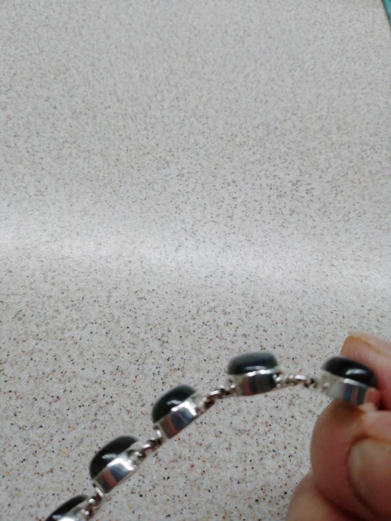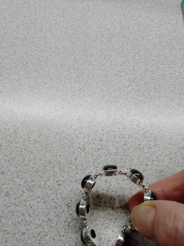 Good bracelet, fit not on a full hand. Beautiful stones, the bracelet goes with most of the wardrobe. But this is not silver. There is a smell of metal, silver does not smell.