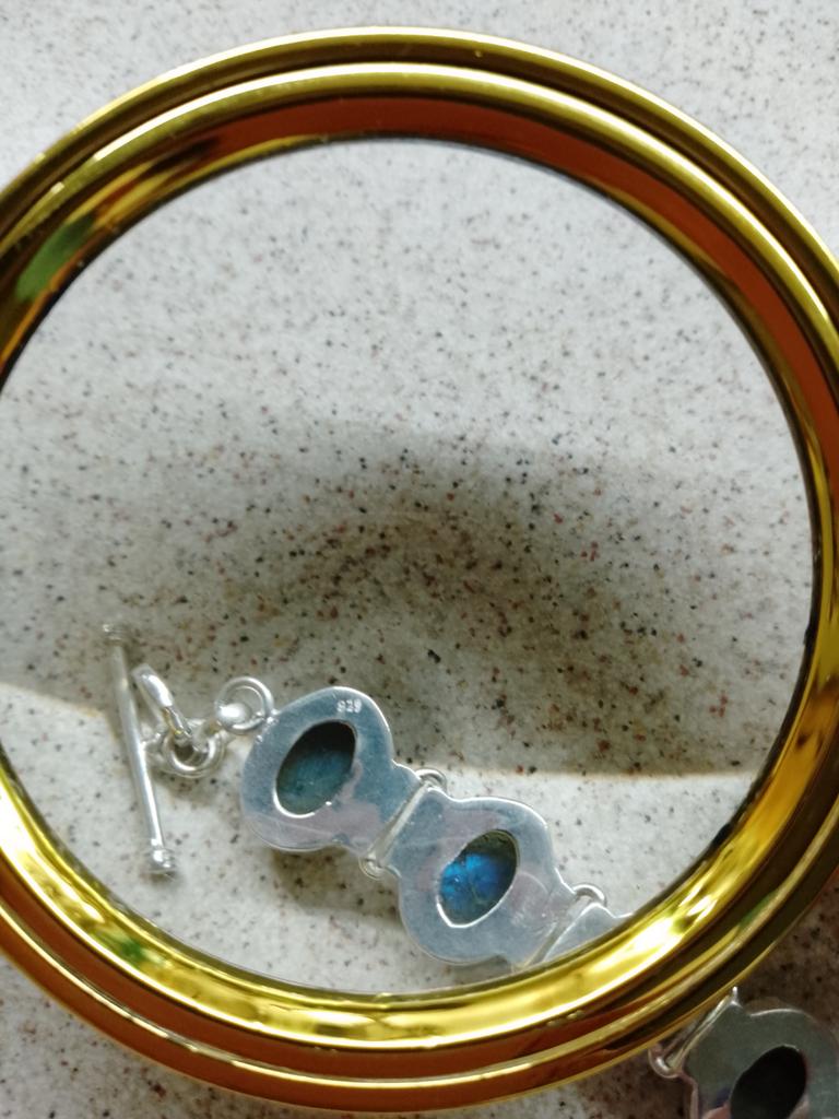 Unexpectedly (for Indian silver products) very high quality. The bracelet is actually 925 assay value. All stones are iridescent. There is internal cracking typical for the structure of labradorite, no chips. The toggle lock is neat and looks reliable, all the rings of the clasp are soldered. Very pleased. Thank you very much.