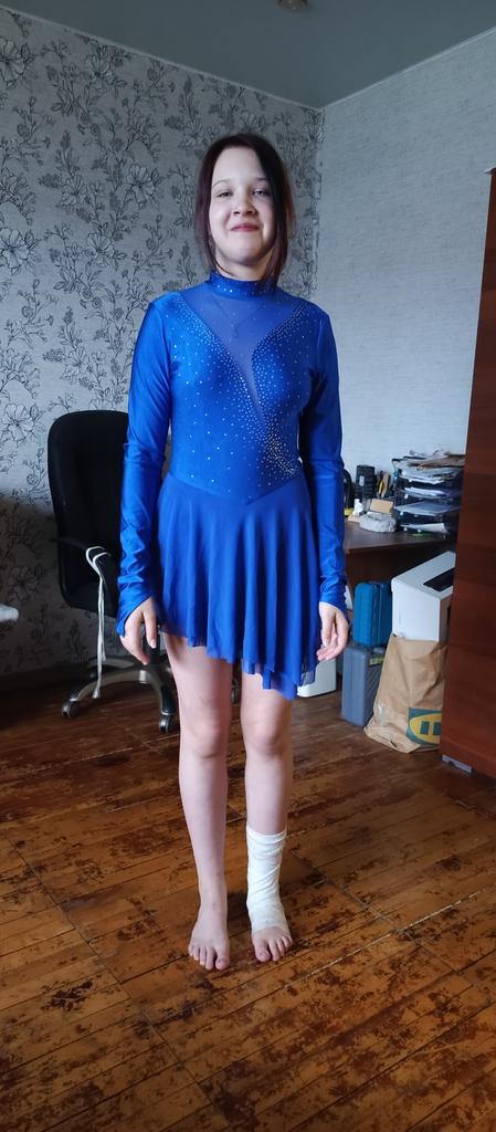 Women Figure Skating Costume Long Sleeve Shiny Rhinestone Sheer Mesh Lyrical Dance Ballet Gymnastics Leotard Dress