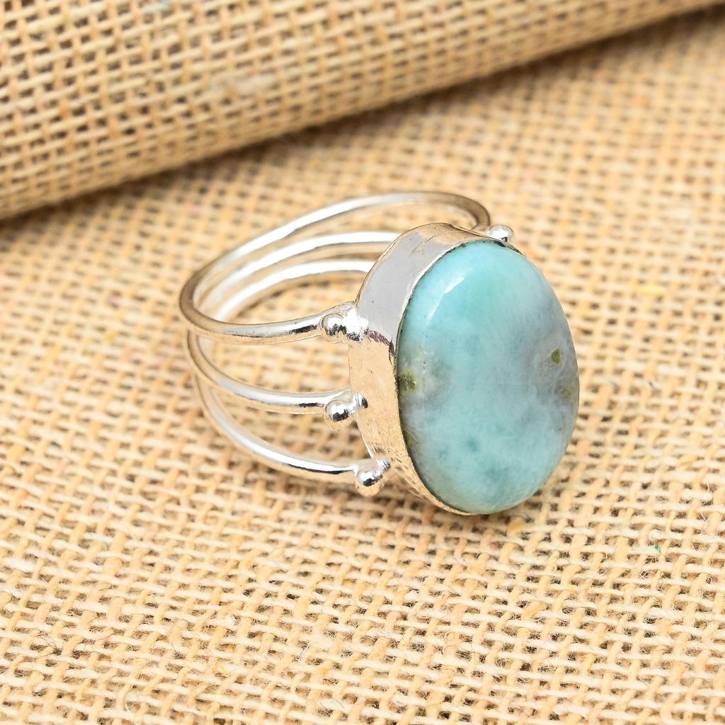 Pretty Larimar Gemstone 925 Sterling Silver Handmade Jewelry Lavish Ring For Wedding Gift