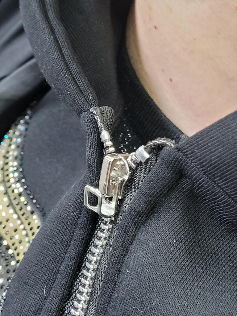 The studs are excellent. Because the necklace is straight like a belt, it doesn't lie below the neck.. Therefore, the necklace is only on the neck.