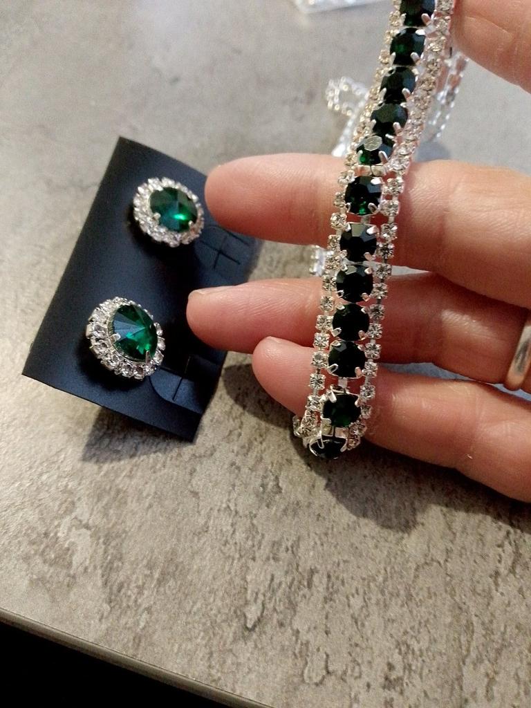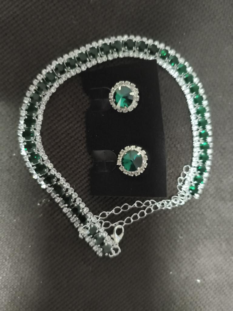 Luxury Necklace Earrings Sets Green Crystal Necklace Women Weddings Bride Jewelry Accessories