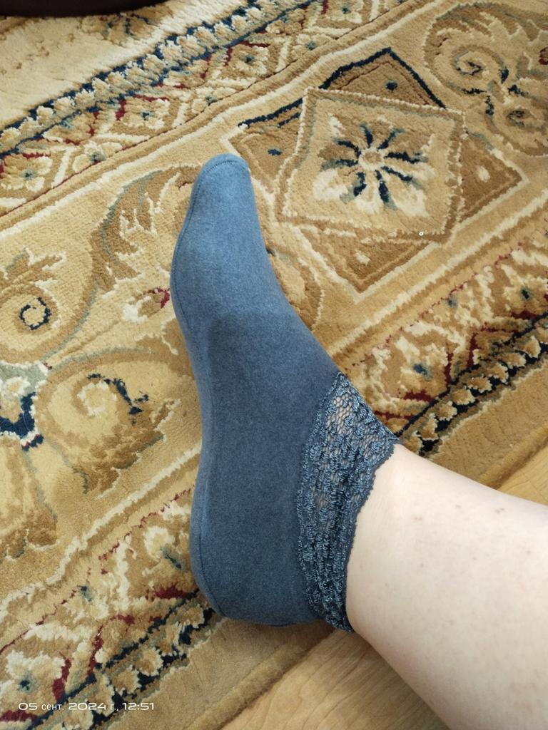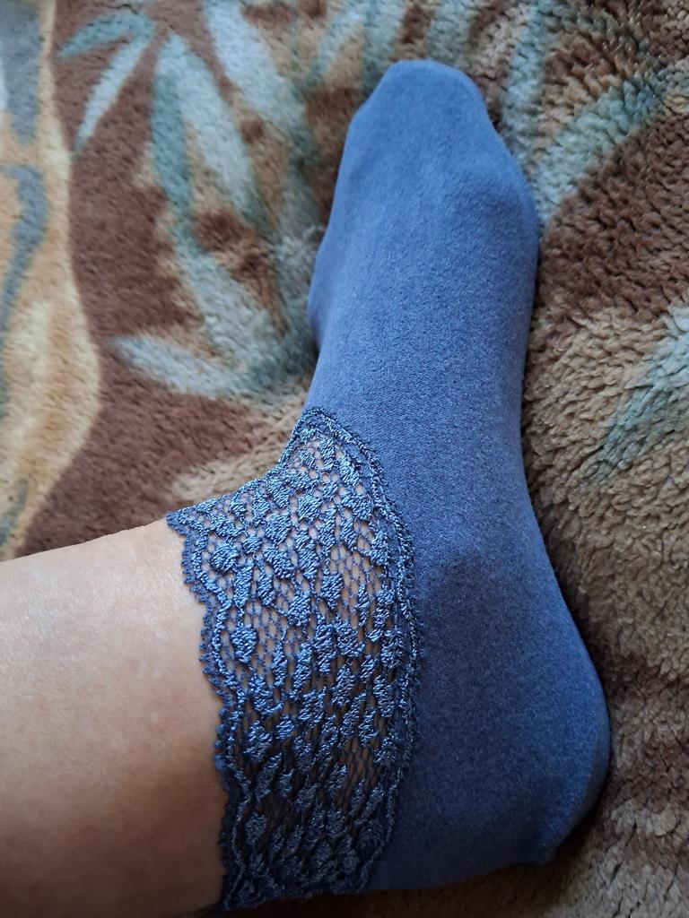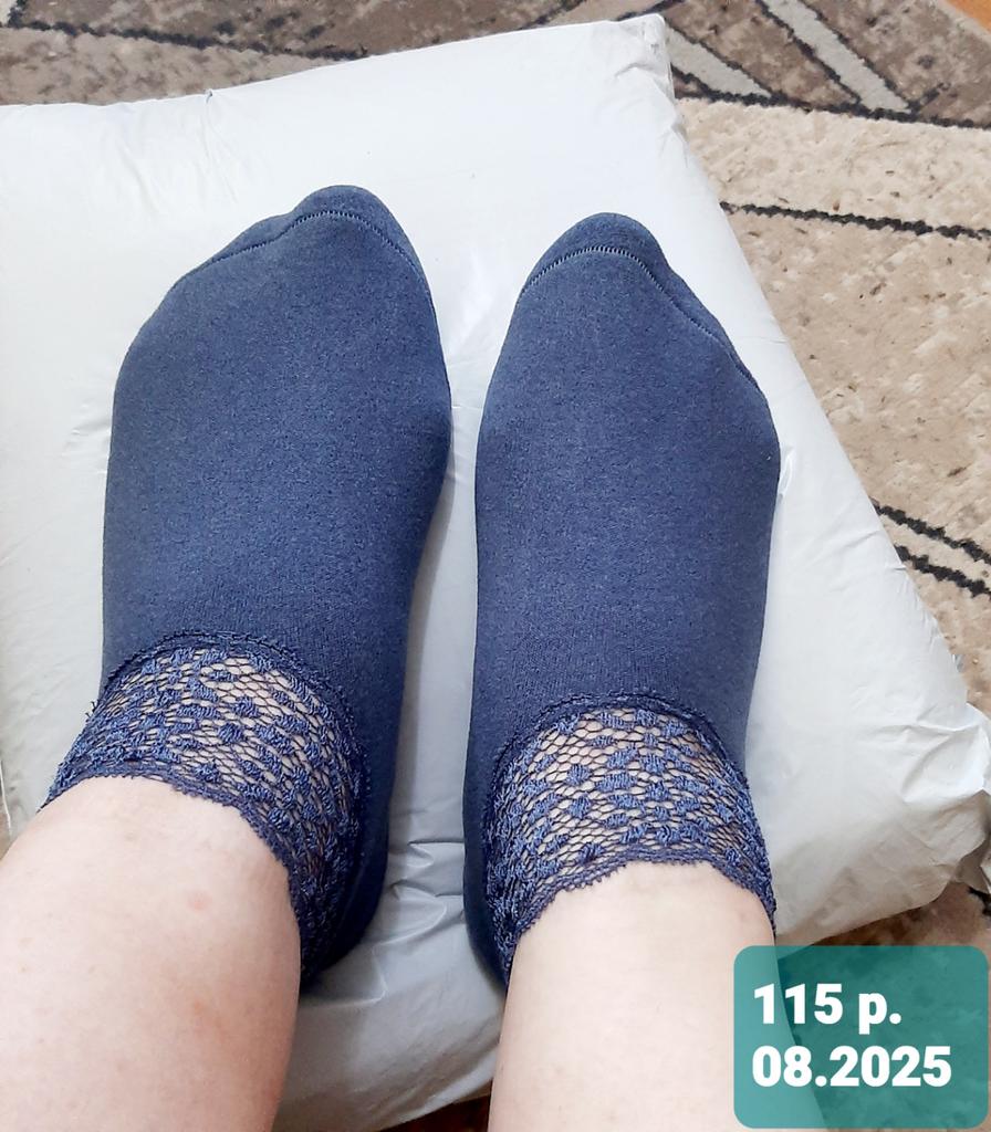 I wear such socks with pleasure. This time, in the place where the elastic is sewn on, the lace is a bit tight, it is not very convenient to put on. For a small size and a thin foot, it might be convenient.