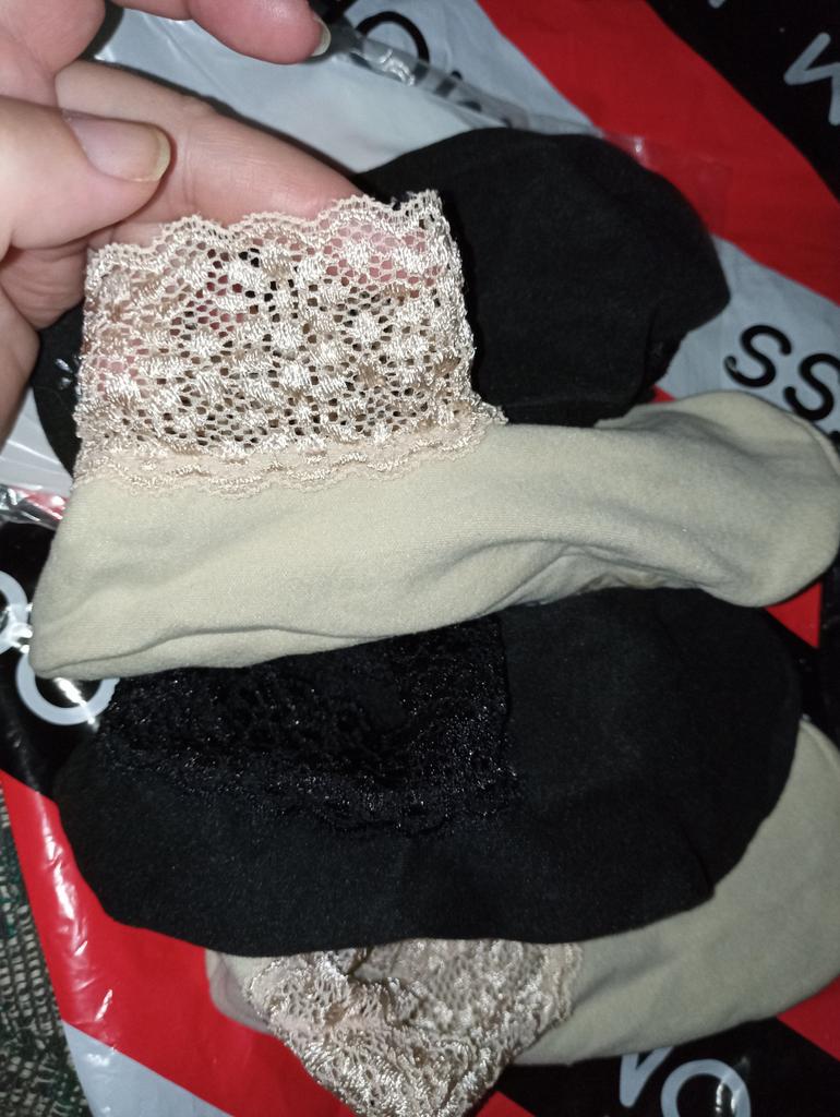 I bought two pairs, the beige ones fit more or less in size 37, the black ones didn’t even fit, it’s a shame… Nooo... fabric, lace of good quality