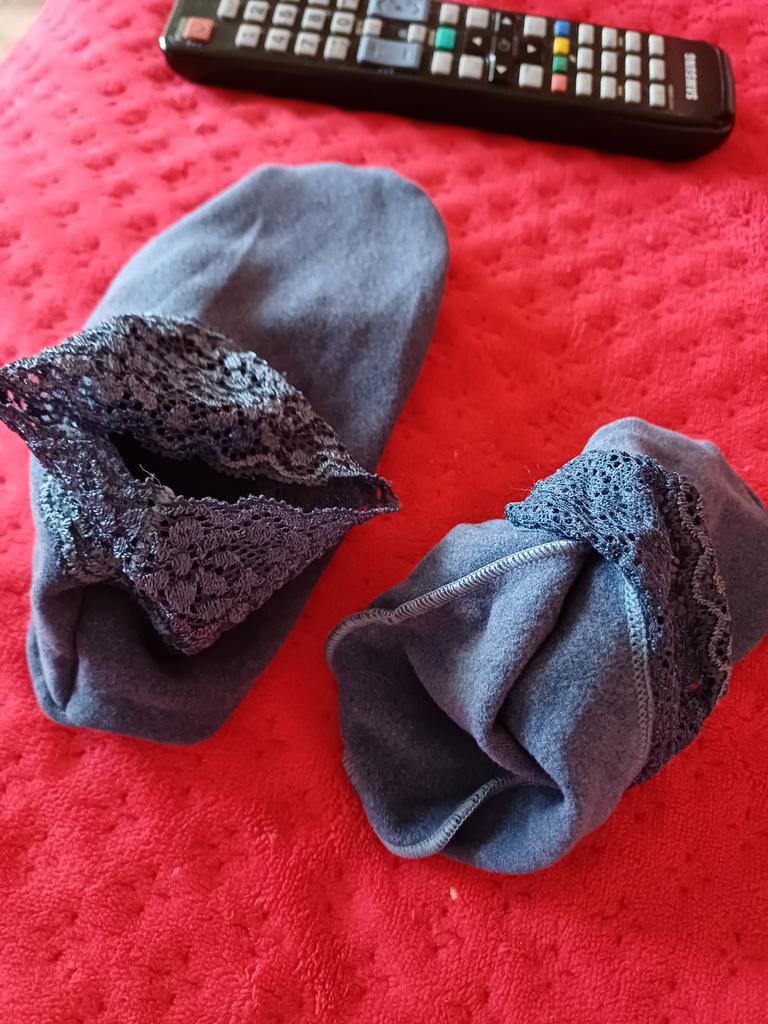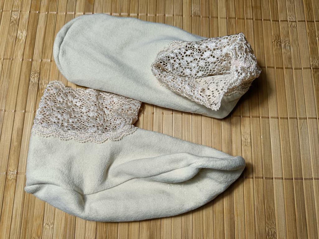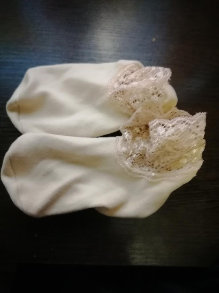 It is impossible to put these socks on a woman's foot, the lace does not stretch. If there was a correspondence between the foot and the circumference of the lace, it would be possible to try for a baby, but as it is, only for dolls. I give one star for the design. But it is not needed if the socks cannot be put on
